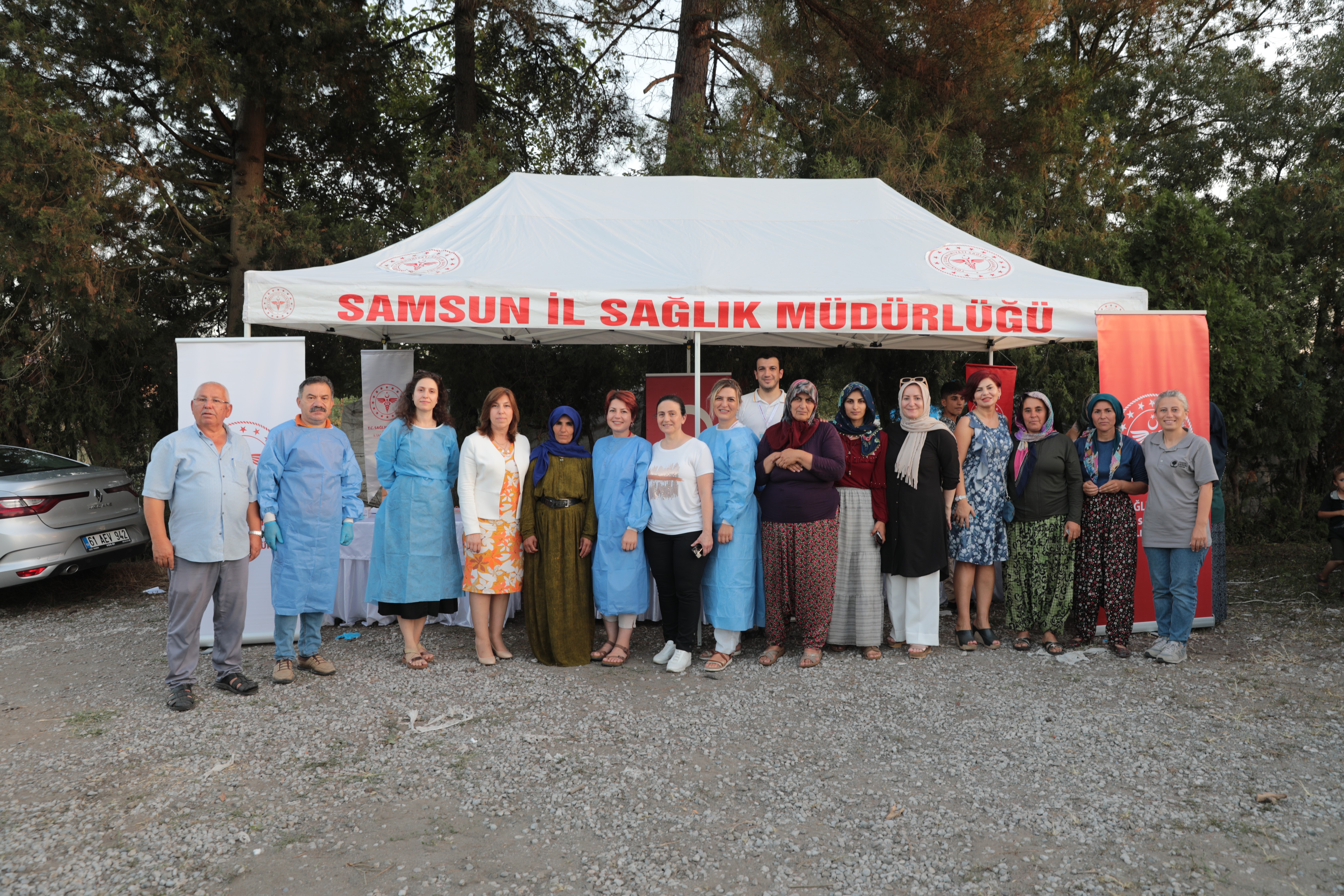 Tekkeköy’ün Balcalı Mahallesi’nde kurulan sağlık çadırında teste giren işçilerin sağlık kontrolleri uzmanlar tarafından yapılıyor. İşçilerin kaldıkları mekanlara gidilerek kanser tarama aracının içerisinde meme kanseri taraması uygulanırken, kurulan çadırda işçilerin insülin değerlerine, boy ve kilo endeksine, tansiyonlarına ve solunum durumlarına bakılıyor.
