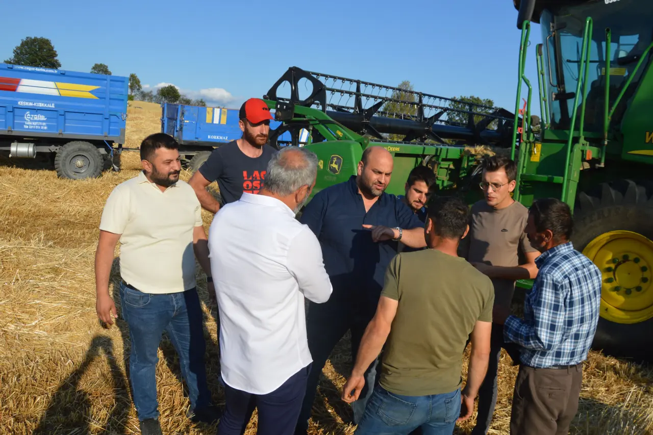 Dereköy ve Demiryurt mahallelerinde devam eden hasat çalışmalarını yerinde inceleyen heyet, çiftçilerle sohbet ederek üretim süreci hakkında bilgi aldı.