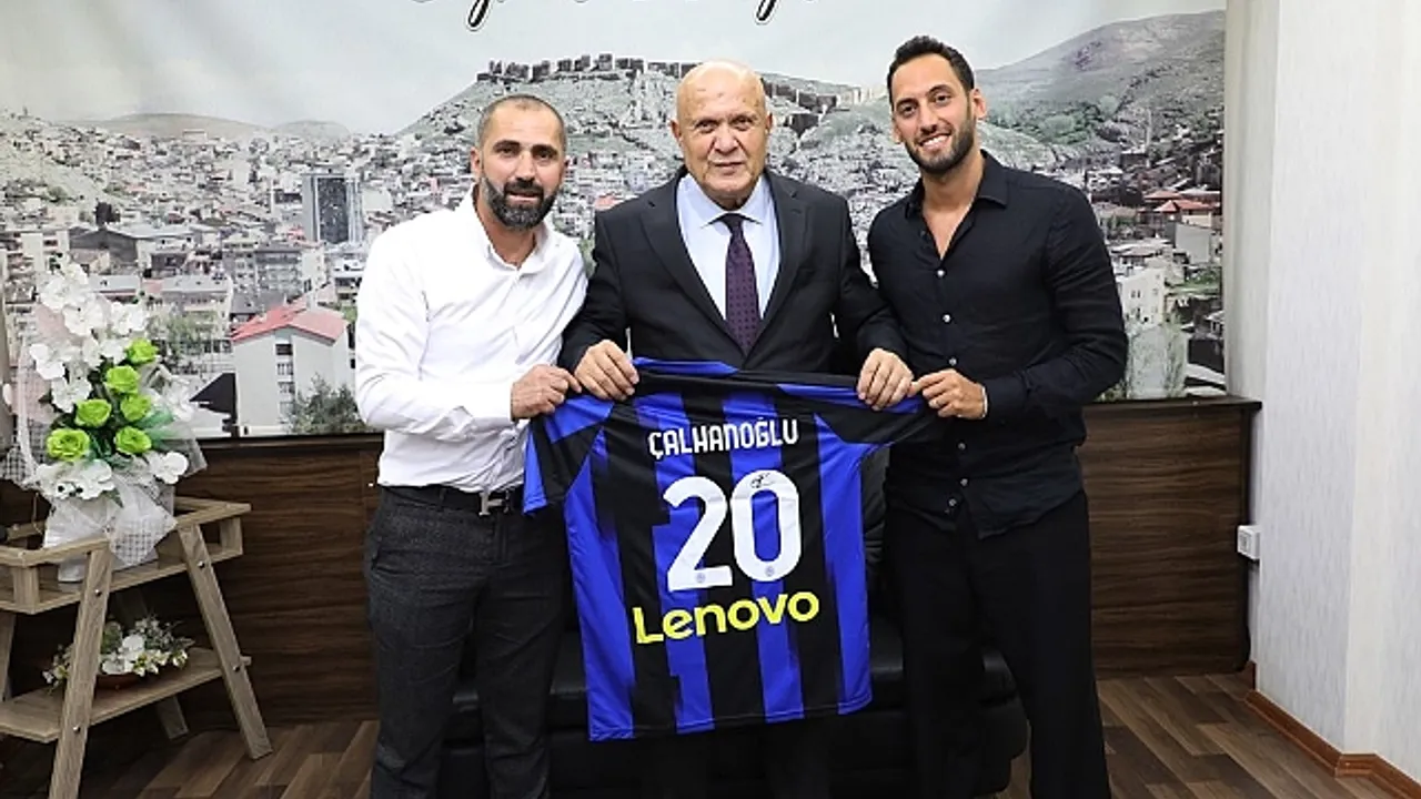 İtalya'nın inter takımında forma giyen ve A Milli Futbol Takımı'nın kaptanlığını üstlenen Hakan Çalhanoğlu, tatil için geldiği baba ocağı Bayburt'ta Belediye Başkanı Hükmü Pekmezci’ye ziyarette bulundu.