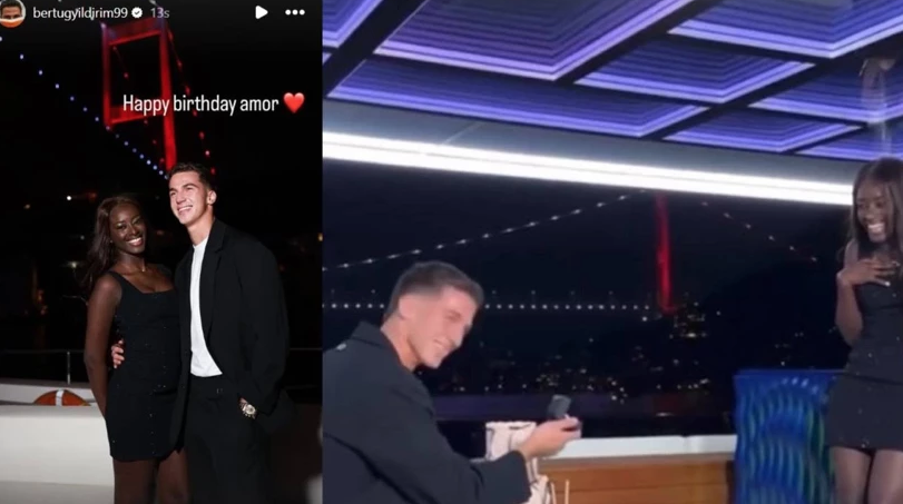 Milli futbolcu Bertuğ Yıldırım, Portekizli model sevgilisi Oriana Correia’ya teknede romantik bir evlilik teklifi yaptı. Çiftin bu özel anları sosyal medyada kısa sürede gündem oldu ve hayranlarından yoğun ilgi gördü.