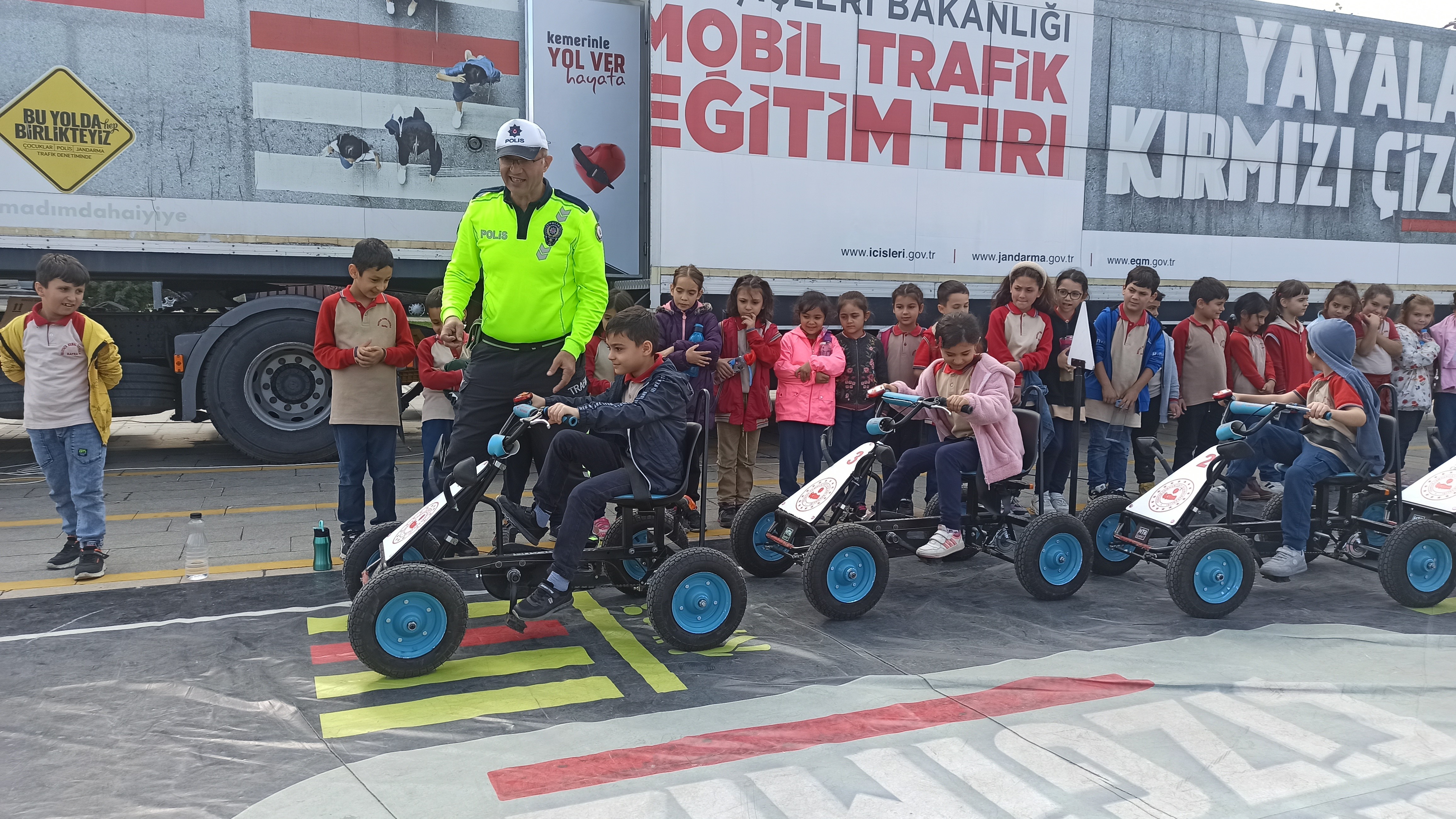 Samsun'un Bafra ilçesinde 'Çocuk Trafik Eğitim Tır’ında minik öğrencilere trafik eğitimi verildi.