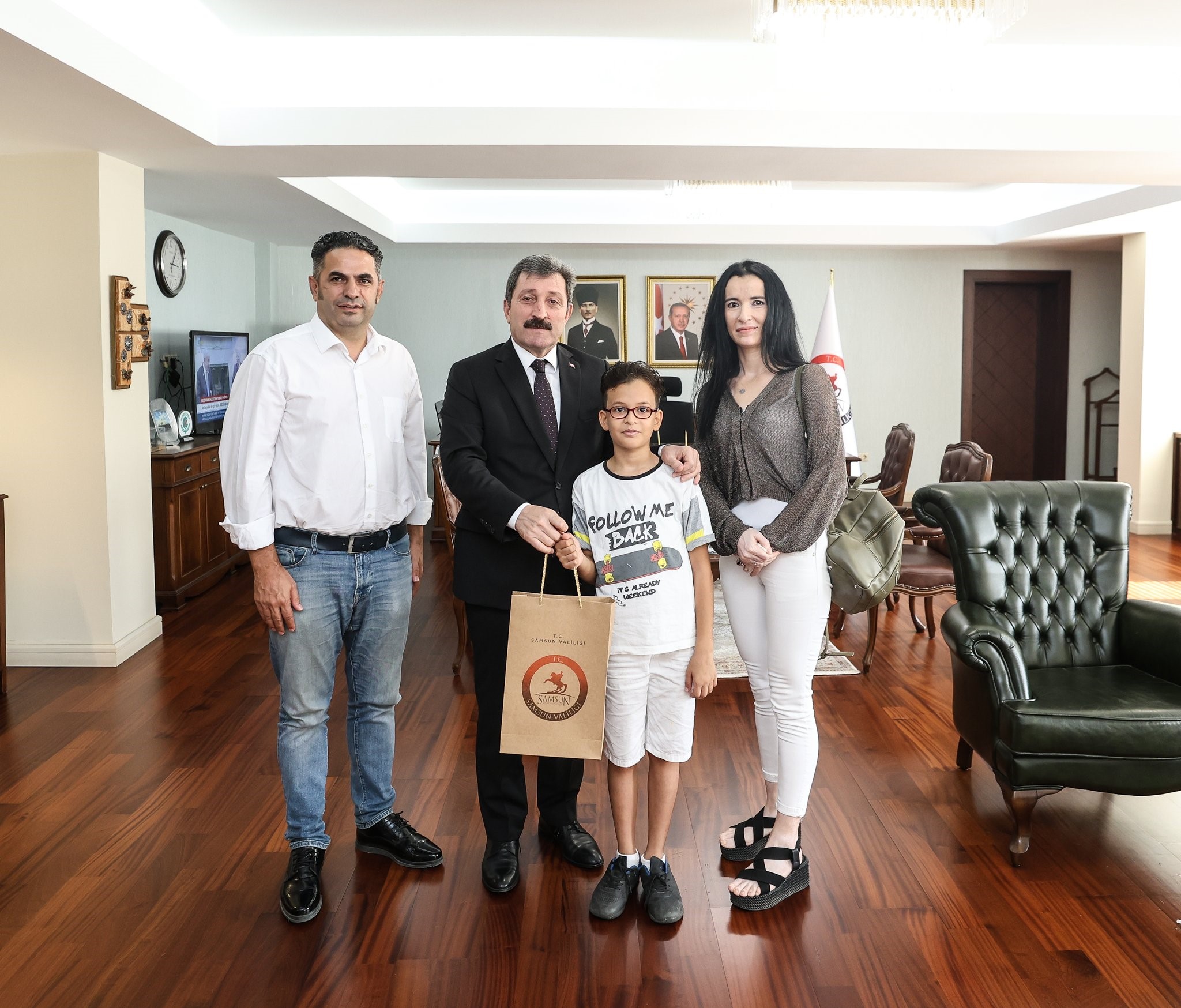 Vali Orhan Tavlı, ziyarette küçük yaşta birçok uluslararası başarıya imza atan yetenek Yusufhan Çakır’ı tebrik ederken, annesi Gökçe Çakır ve babası Süleyman Çakır’a şükranlarını sundu. Tavlı, Çakır ailesine çeşitli hediyeler takdim etti.