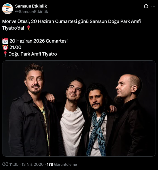 Türk rock müziğinin önemli gruplarından Mor ve Ötesi, Samsun’da hayranlarıyla buluşmaya hazırlanıyor. Grup, 20 Haziran 2026 Cumartesi günü Doğu Park Amfi Tiyatro’da sahne alacak.