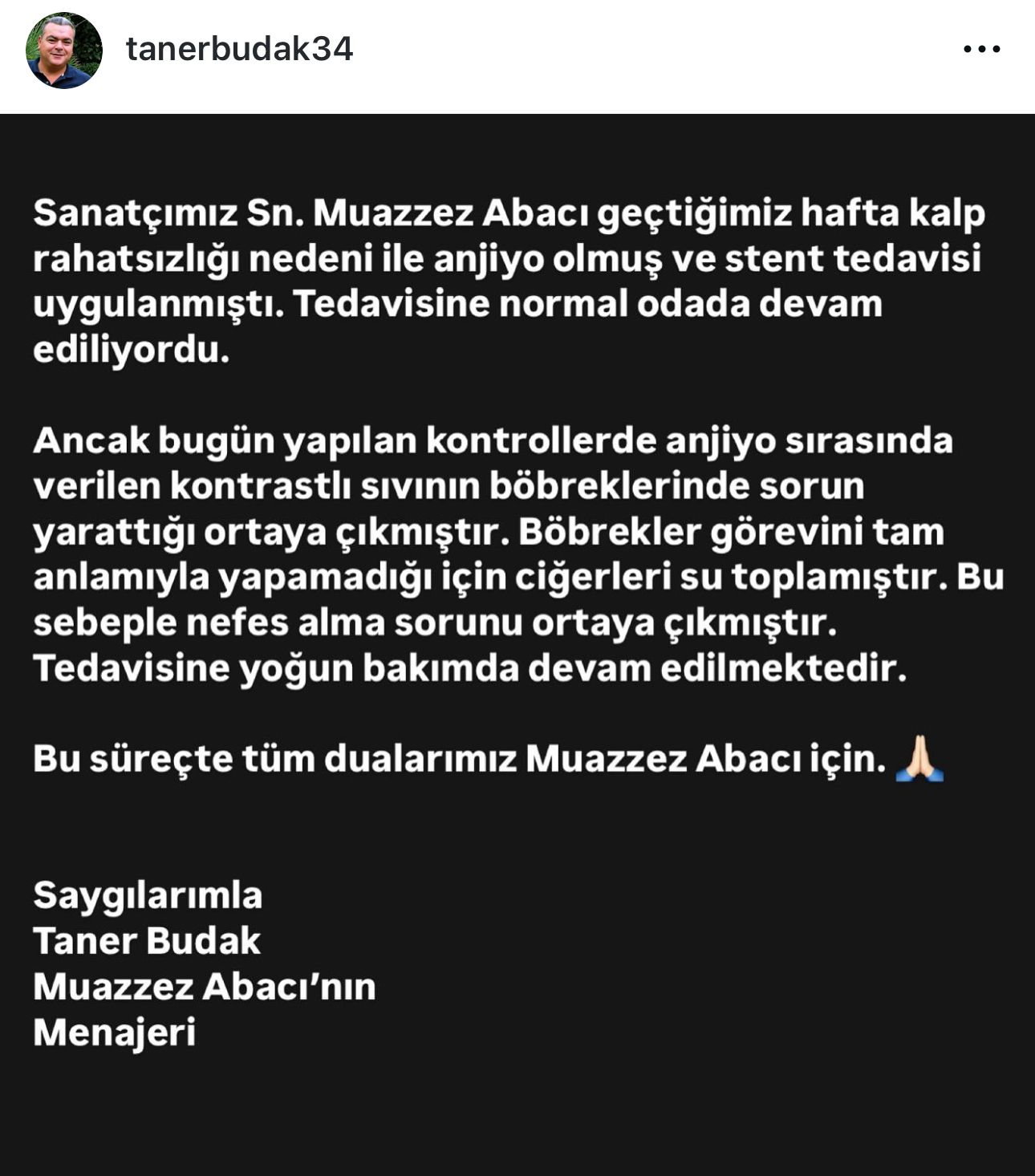 Sanatçının yakın çevresinden gelen açıklamalarda, doktorların durumunu yakından izlediği, Abacı’nın bilincinin açık olduğu ve tedavisinin titizlikle sürdüğü öğrenildi.