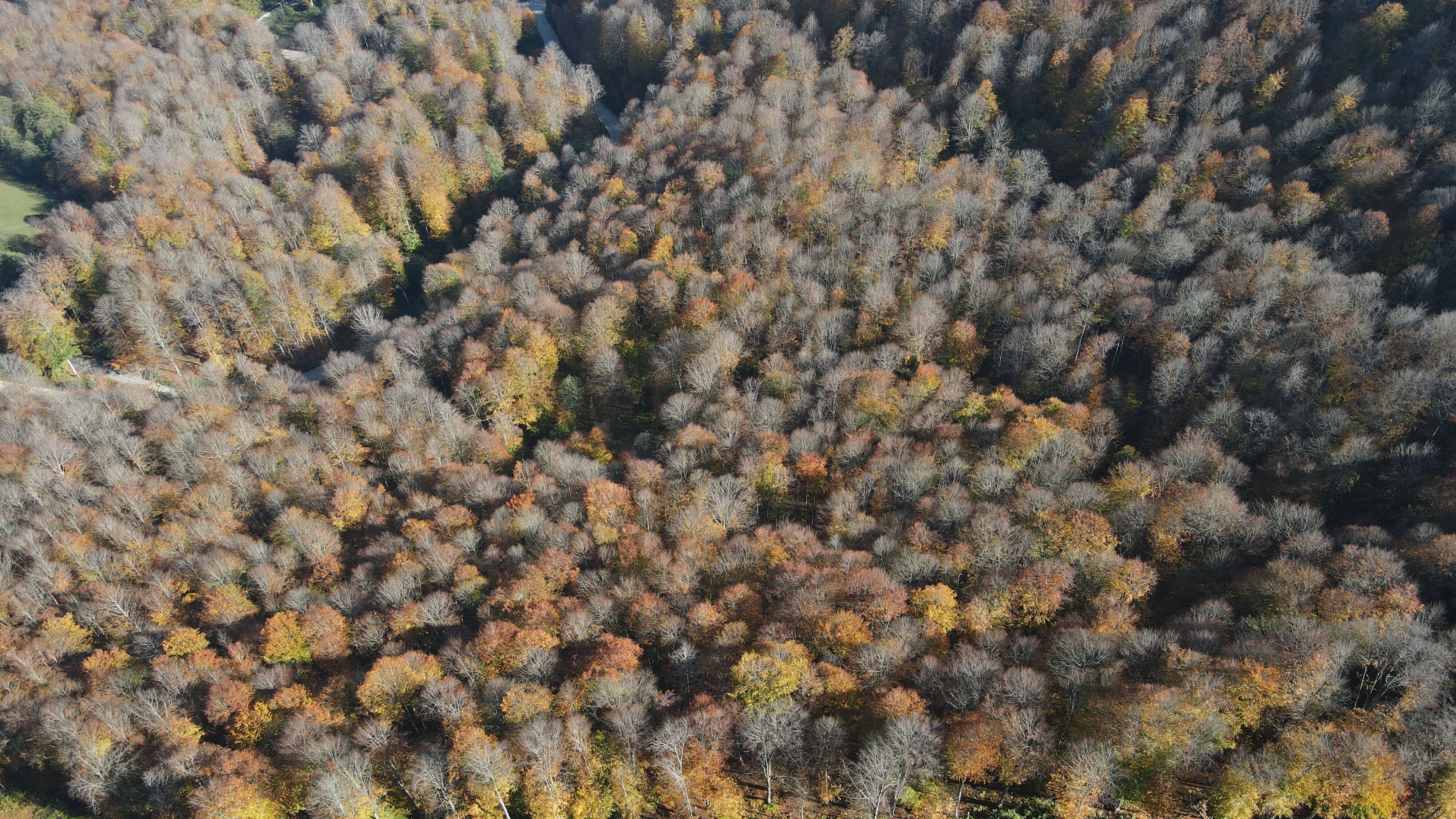 Fındık bahçeleriyle çevrili dağda dökülen yapraklar, yüzeyi sarı bir örtüyle kapladı.
