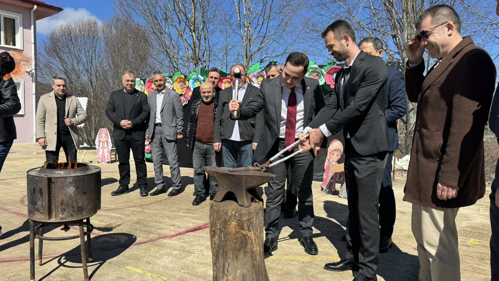 Programda, nevruz geleneğini yansıtan demir dövme, ateş üzerinden atlama ve yumurta kırma gibi etkinlikler yapıldı, öğrenciler tarafından halk oyunları gösterisi sergilendi.