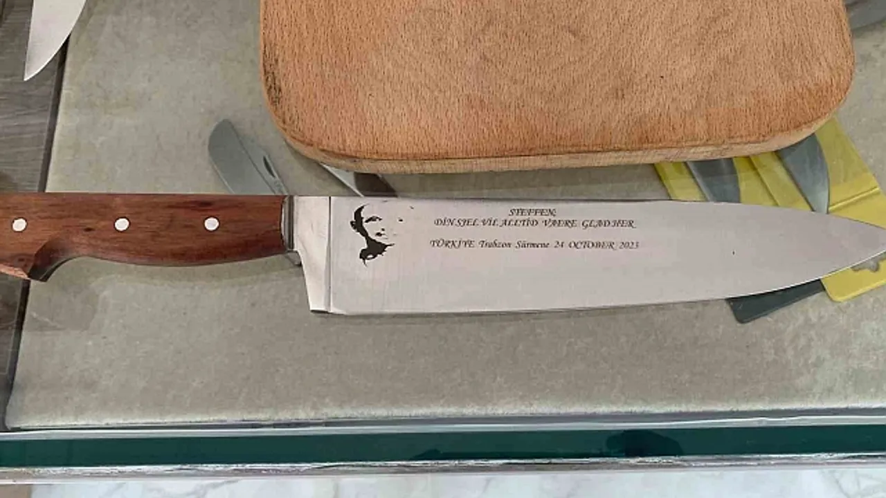 Ailenin Sürmene'ye oğullarının özel eşyalarını almak üzere geleceğini öğrenen ve aynı zamanda Sürmene Belediye meclis üyesi olan bıçak imalatçısı Atakan Berk, aileyi iş yerine davet ederek üzerinde oğullarının resminin bulunduğu Norveç dilinde "Ruhu burada her zaman mutlu olacak" yazılı bir bıçak hediye etti. Bıçağı alan anne Monika Snppene, gözyaşlarına hakim olamazken, oğullarının 20 Ağustos'ta ülkeden ayrıldığını ve son olarak ölüm haberini aldıklarını söyledi. Norveçli aile ile dil çeviri arama motoru üzerinden anlaşan Berk, aileye bıçağı hediye etti. Aldıkları hediye karşısında duygulanan aile ardından ilçeden ayrıldı.