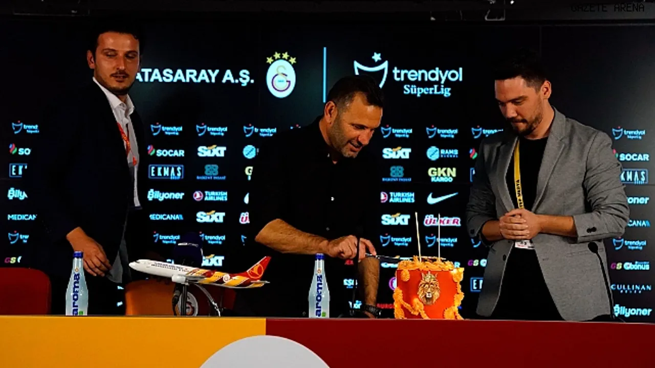Trendyol Süper Lig'in 9. haftasında Galatasaray evinde karşılaştığı Beşiktaş'ı 2-1 mağlup etti. Maçın ardından geçtiğimiz günlerde 50. yaşına giren Galatasaray Teknik Direktörü Okan Buruk'a basın mensupları tarafından sürpriz doğum günü organizasyonu yapıldı. Basın toplantısının bitmesinin ardından Buruk'a sarı-kırmızı pasta hediye edildi. Okan Buruk pastadaki mumları üfledikten sonra basın mensuplarıyla hatıra fotoğrafı çektirdi.