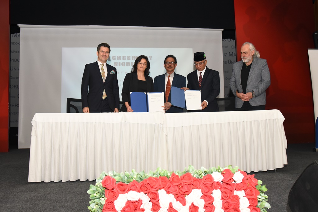 Atatürk Kongre ve Kültür Merkezinde (AKM) düzenlenen programa; Maulana Malik İbrahim Malang İslam Devlet Üniversitesi Rektörü Prof. Dr. H. M. Zainuddin, OMÜ Rektör Yardımcıları Prof. Dr. Selim Eren, Prof. Dr. Sevim Alışır, Ulusoy Un Yönetim Kurulu Başkanı ve aynı zamanda Endonezya Fahri Konsolosu olan Dr. Eren Günhan Ulusoy, Uluslararası Birim Başkanı Prof. Dr. Mustafa Said Kurşunoğlu, akademisyenler ve çok sayıda öğrenci katıldı.