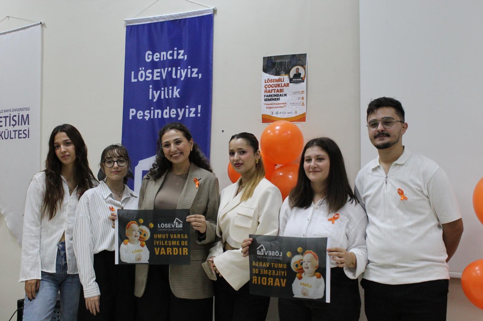 Ondokuz Mayıs Üniversitesi (OMÜ) İletişim Fakültesi’nde, 2-8 Kasım Lösemili Çocuklar Haftası kapsamında anlamlı bir etkinlik düzenlendi. LÖSEV Samsun Fayda Proje Sorumlusu Buse Sezgin, fakülte öğrencileriyle buluşarak LÖSEV’in çalışmaları, gönüllülük faaliyetleri ve lösemi farkındalığı üzerine seminer verdi.