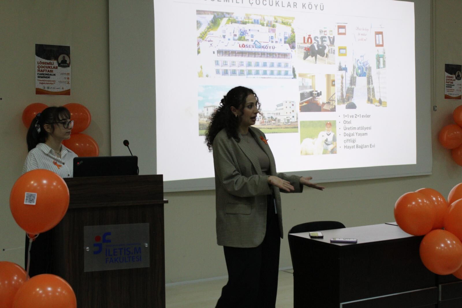Seminerde LÖSEV’in yürüttüğü çalışmalar, gönüllülük faaliyetleri, Ankara’da bulunan Lösemili Çocuklar Köyü, LÖSEV’in üniversitelerde lösemi ve kanser farkındalığını artırmayı amaçladığı FAYDA projesinin amaçları hakkında bilgiler verildi. Sezgin, 2-8 Kasım Lösemili Çocuklar Haftası için kampüste yapılan çalışmalar ve her yerin turuncu olmasının sağlanarak umudu ve farkındalığı çoğaltma üzerinde durdu. Seminerde ayrıca medya aracılığıyla farkındalık oluşturmanın önemine değindi. Öğrenciler, lösemiyle mücadelede iletişimin gücü ve doğru bilgilendirmenin etkisi konusunda bilgilendirildi.
