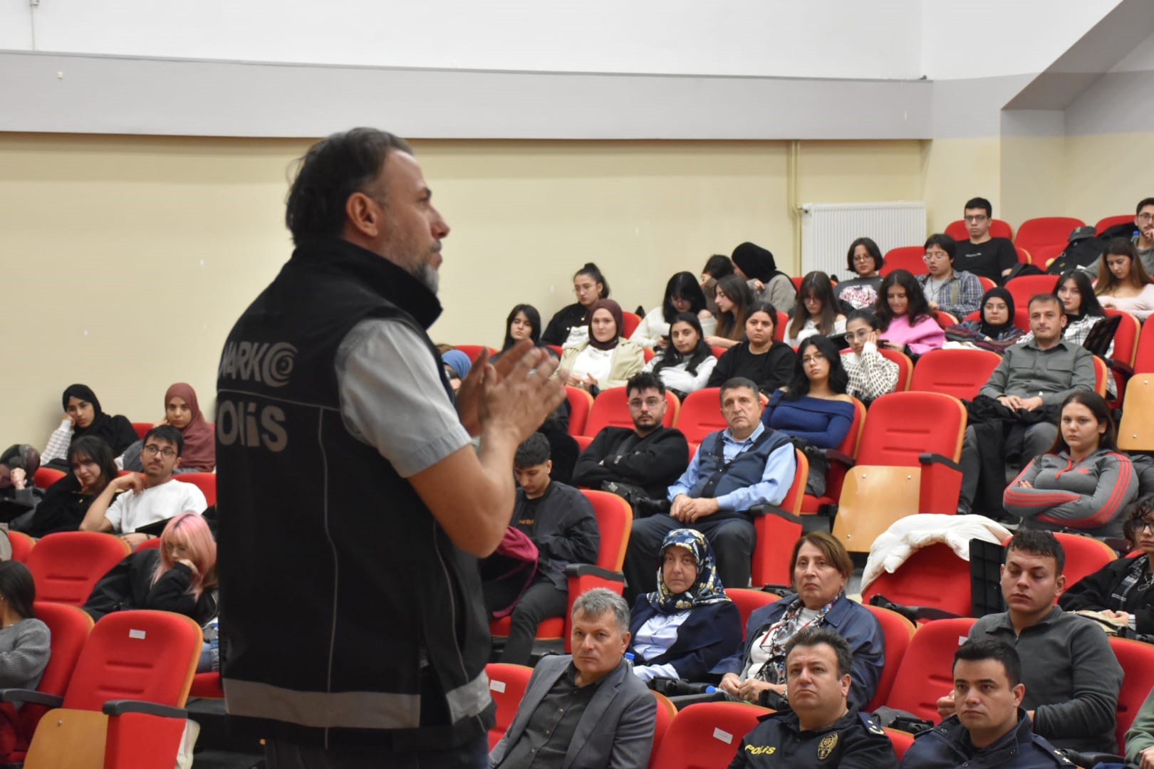 OMÜ Turizm Fakültesi Konferans Salonu’nda gerçekleştirilen seminer, Bağımlılıkla Mücadele Uygulama ve Araştırma Merkezi Müdürlüğü ile Samsun Emniyet Müdürlüğü Narkotik Suçlarla Mücadele Şube Müdürlüğü iş birliğiyle düzenlendi. Turizm Fakültesi ve Bafra Turizm MYO 1. sınıf öğrencilerine yönelik olarak düzenlenen farkındalık eğitiminde, uyuşturucu madde nedir, bağımlılığın başlama süreci, madde kullanımının fiziksel, psikolojik ve sosyal etkileri, uyuşturucu madde bağımlılığıyla mücadele yöntemleri ve uyuşturucu madde kullanımının hukuki sonuçları gibi konularda kapsamlı bilgiler paylaşıldı. Ayrıca, uyuşturucu madde kullanımını ve ticaretini önlemek amacıyla geliştirilen Uyuşturucuyla Mücadele Uygulaması (UYUMA) öğrencilere tanıtıldı.
