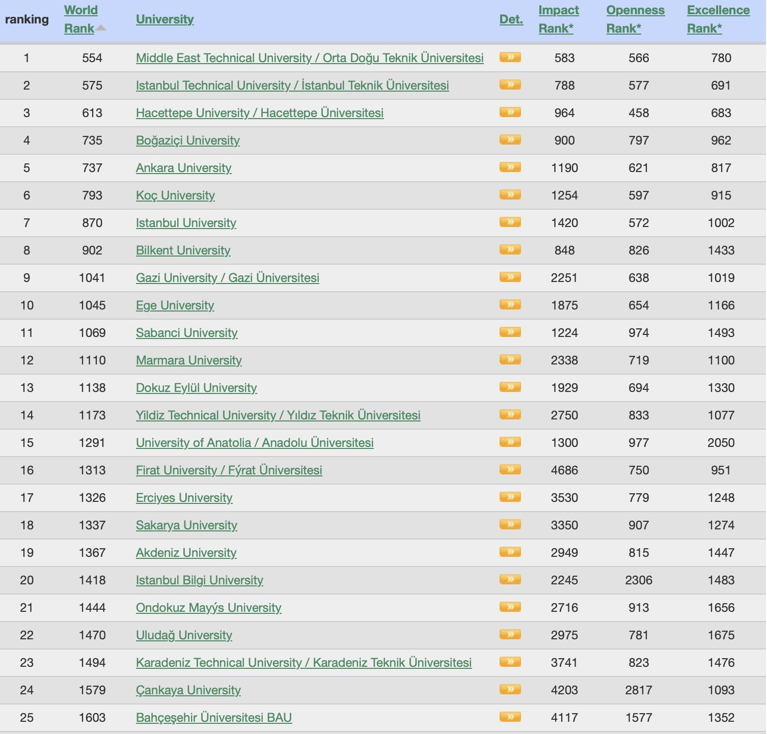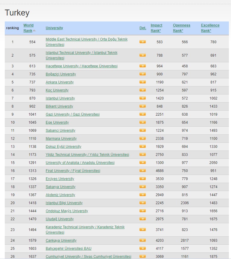 Ayrıca, değerlendirme ölçütleri arasında Ondokuz Mayıs Üniversitesi açıklık sıralamasında 913’üncü, mükemmellik sıralamasında 1656’ıncı, görünürlük sıralaması ise 2716’ıncı sırada yer aldı.