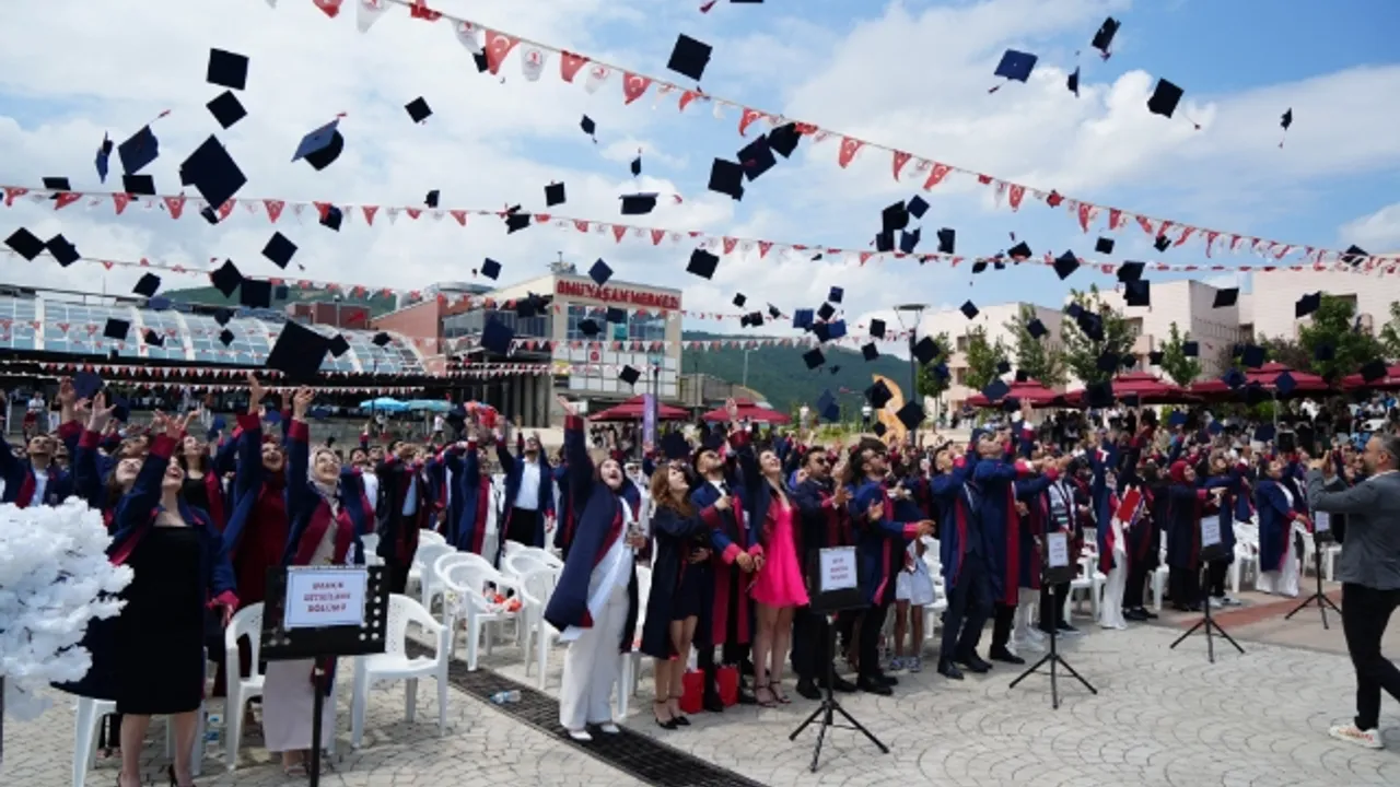 Belgelerin takdimi ve edilen yeminin ardından keplerini havaya fırlatan öğrenciler mezuniyetin coşkusu yaşadı. Mezuniyet törenine öğrencilerin aileleri de katıldı