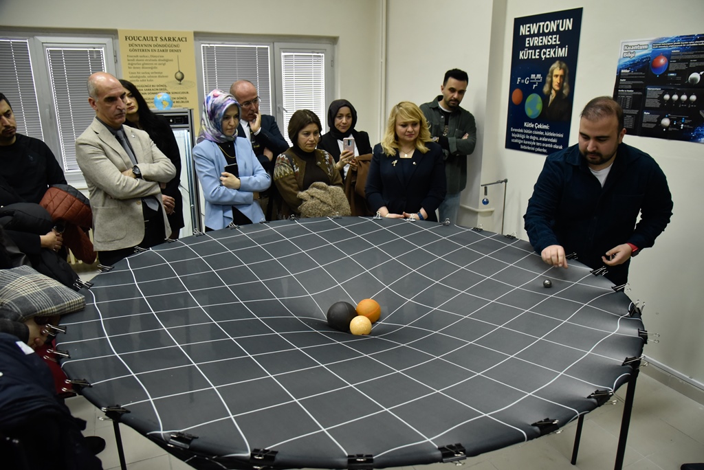 Programın devamında konuşan Rektör Yardımcısı Prof. Dr. Alper Kesten ise fen bilimlerinin önemine dikkat çekerek, “Günümüzde fen bilimleri herkesin ilgisinin üzerinde olması gereken bir alan. Ne yazık ki son yıllarda fizik, kimya, biyoloji ve matematik gibi temel alanlarda ülkemizde bir düşüş grafiği izleniyor. Öğrencilere fen bilimlerini sevdirebilmek için, bilimin hayatın her alanında var olduğunu göstermek ve bunu öğrencilerin anlayabileceği sade bir dille yapmak gerekiyor. Öğretmenlerimizin akademisyenlerle bir araya gelerek uygulamaları sınıfa taşıması son derece kıymetli” ifadelerini kullandı.