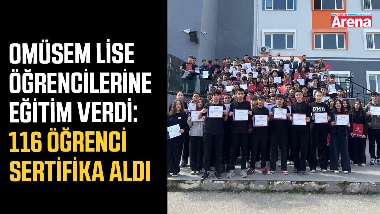 Samsun Ondokuz Mayıs Üniversitesi Sürekli Eğitim Merkezi (OMÜSEM) tarafından düzenlenen "Lise Öğrencileri için Bilimsel Araştırma, Proje Yazma ve TÜBİTAK 2204-A Odaklı Proje Geliştirme Eğitimi Sertifika Programı"nı tamamlayan OMÜ Mesleki ve Teknik Anadolu Lisesi öğrencileri için sertifika töreni gerçekleştirildi.