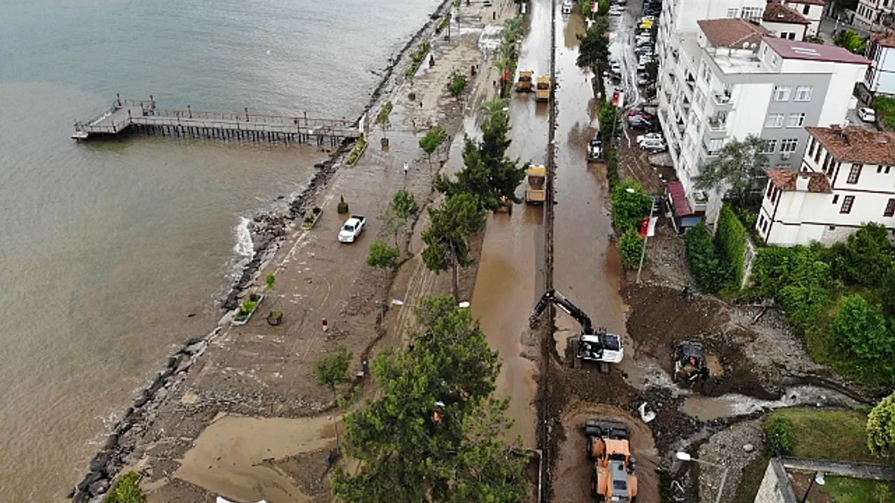Ordu’da sel ve heyelan sonrası kapanan sahil yolu havadan görüntülendi