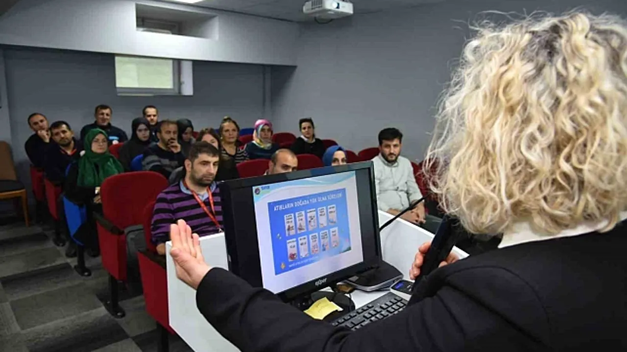 Çevre Mühendisi Ezgi Kazan Trabzon İl Sağlık Müdürlüğü personeline yaptığı sunumda 'Sıfır Atık' konusunun atıkların ilk üretildiği mekânlarda, yani kaynağında başladığına vurgu yaparak şöyle konuştu: