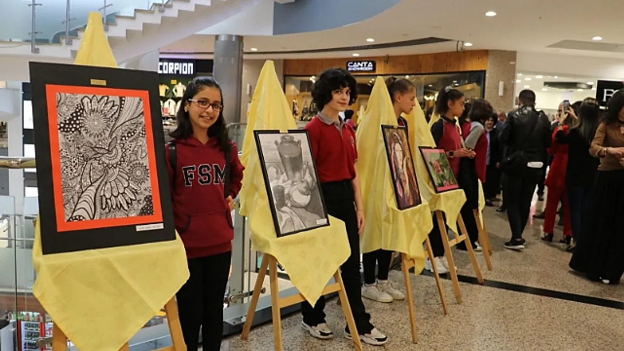 Ortaokul öğrencilerinin yıl boyunca yaptığı resimler, beğeniye sunuldu