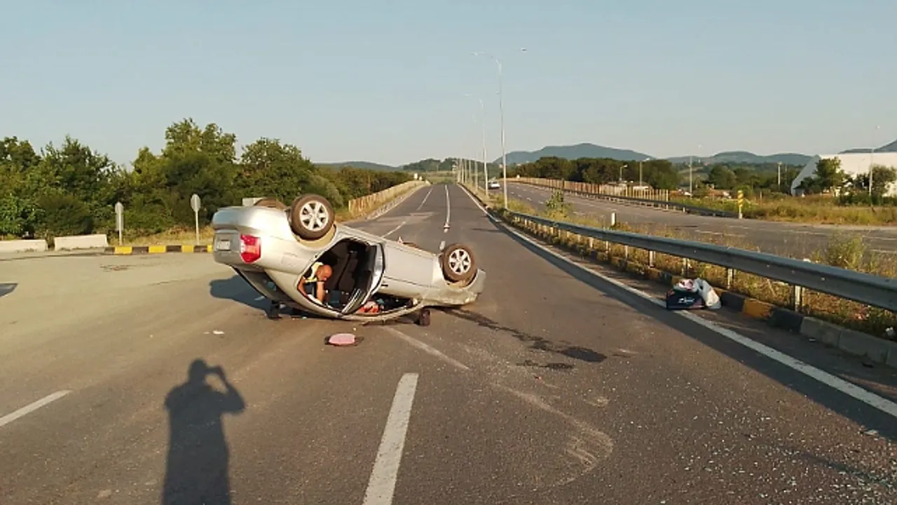 Otomobil bariyerleri aştı, karşı şeritte takla atarak durabildi