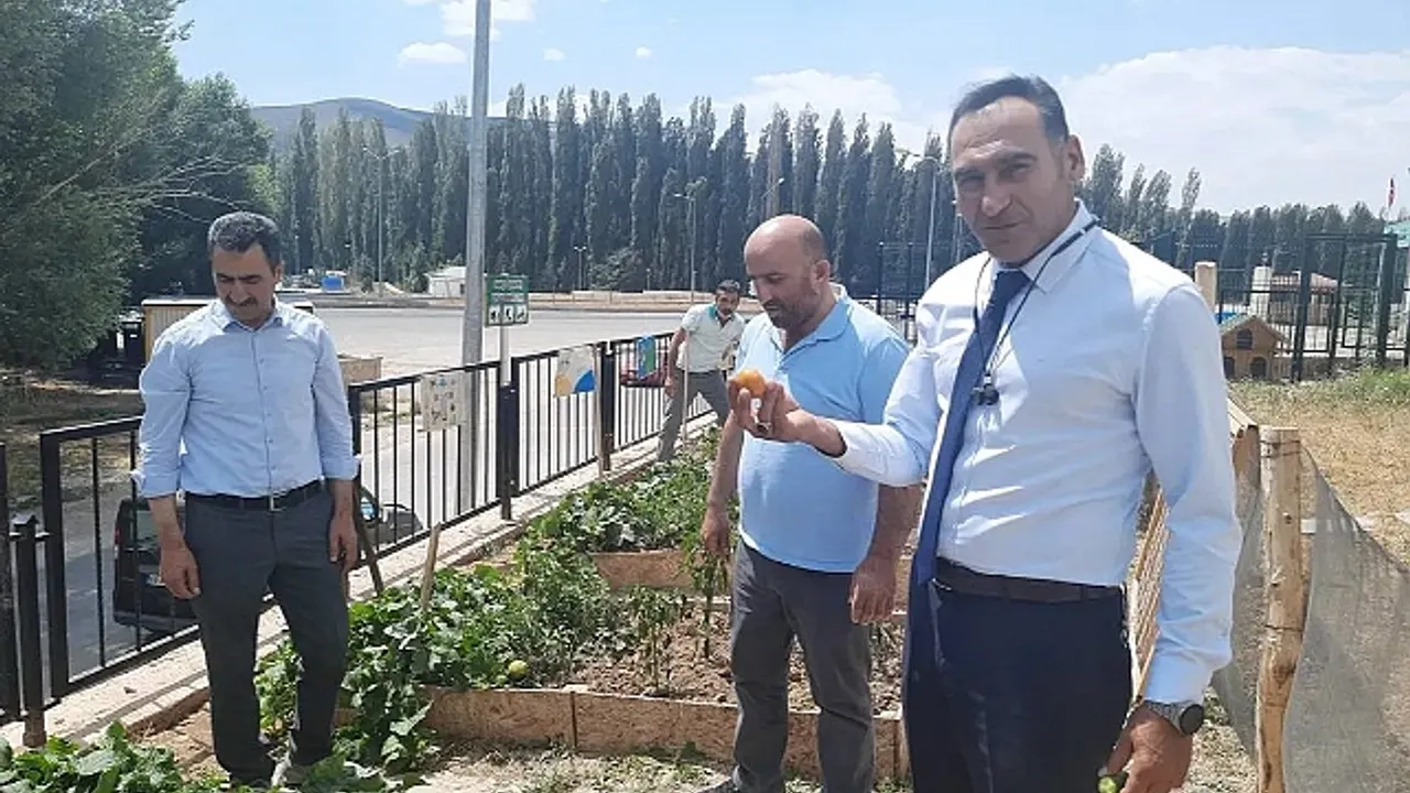 Milli Eğitim Müdür Yardımcısı Mehmet Güven, okul bahçesinde kurulan tarım alanında incelemelerde bulunarak, yöneticilerden bilgiler aldı. Öğrencilerin moral ve motivasyonu için okul yönetiminin güzel bir işe imza attığını söyleyen Güven, daha sonra yönetici ve öğretmenlerle yetiştirilen sebzelerden topladılar.