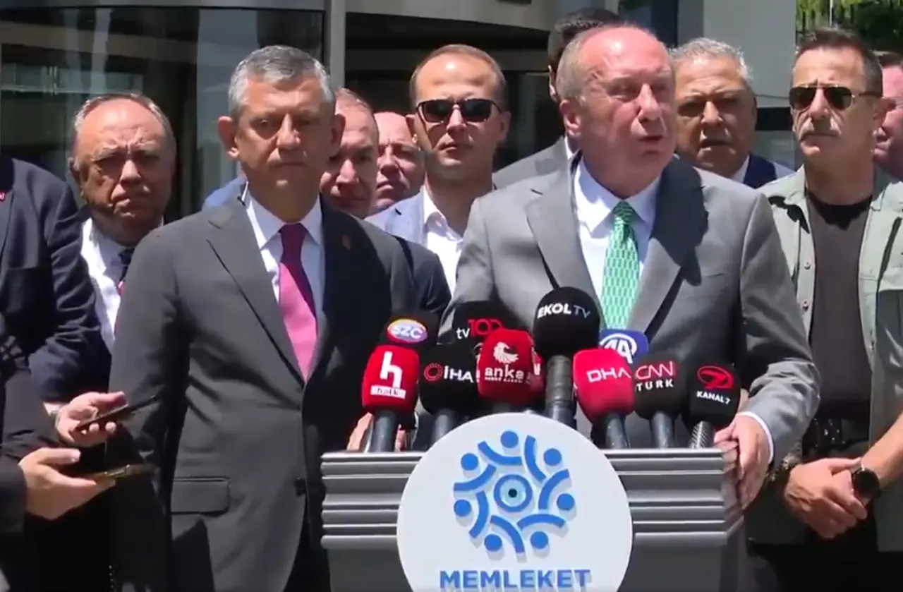 CHP Genel Başkanı Özgür Özel ve beraberindeki heyetle Memleket Partisi Genel Başkanı Muharrem İnce ve beraberindeki heyet bugün öğleden önce Memleket Partisi’nin Genel Merkezi’nde bir araya geldi. Saat 11’de başlayan görüşme yaklaşık 1 saat sürdü. Görüşmenin ardından genel başkanlar kamera karşısına geçti.