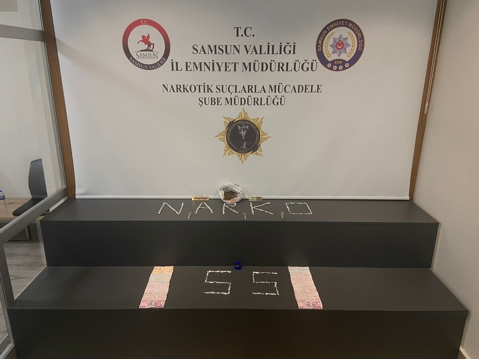 Olay, Canik ilçesi 200 Evler Mahallesi'nde meydana geldi. Edinilen bilgiye göre, Samsun Cumhuriyet Başsavcılığı koordinesinde uyuşturucu ile mücadele kapsamında çalışma yapan Samsun Emniyet Müdürlüğü ekipleri, H.K.'nin (28) motosikletinde ve ikametinde yapılan aramalarda, alüminyum folyolara sarılı, satışa hazır bir şekilde 96 fişek halinde, toplam 100 gram sentetik kannabinoid (Bonzai), 13 fişek halinde toplam 13 gram metamfetamin, 3 adet uyuşturucu madde kullanım aparatı, 5 adet sentetik ecza ve uyuşturucu madde ambalajında kullanılan alüminyum folyo ele geçirildi. Uyuşturucu madde satışından elde edildiği değerlendirilen 30 bin 150 TL paraya el konuldu. Olayla ilgili yakalanan H.K. gözaltına alındı. Soruşturma devam ediyor.