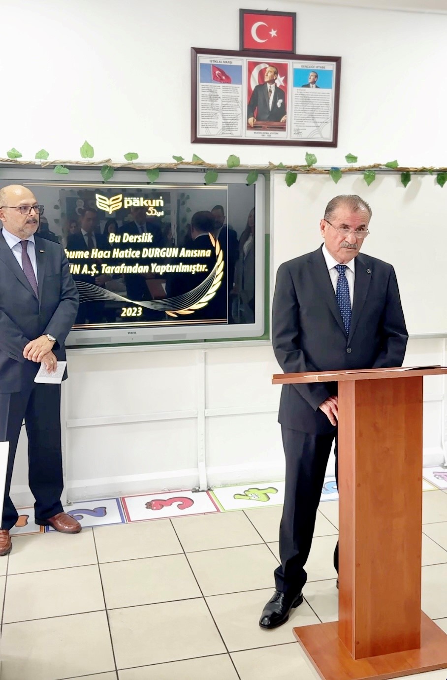 Pakun Yönetim Kurulu Başkanı Niyazi Durgun’un merhum eşi Hacı Hatice Durgun adına yaptırılan dersliğin açılışına, Başkan Durgun’un yanı sıra, Samsun Atakum Kaymakamı Kemal Yıldız, Samsun Atakum İlçe Milli Eğitim Müdürü Mehmet İrfan Yetik, Taflan Yalı İlkokulu Okul Müdürü Şevket Sağlam, Müdür Yardımcısı Serkan Yıldırım ile Durgun ailesini temsilen Tuncay – Ayşegül Durgun çifti katıldı.