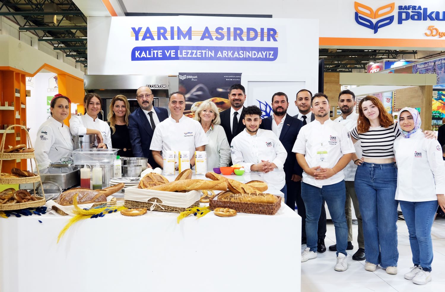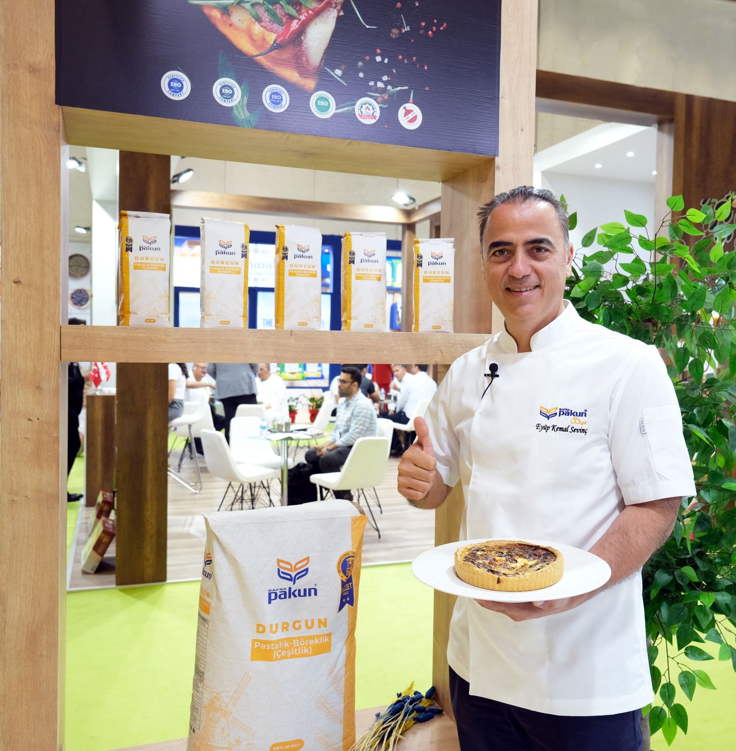 Sektörde 50’nci yılını kutlayan Pakun, fuarın ilk gününde ödüllü şef Eyüp Kemal Sevinç ile ziyaretçilerine benzersiz bir gastronomi deneyimi yaşattı. Şef Sevinç, Pakun’un Avrupa Lezzet ve Kalite Ödülü’ne layık görülen ‘Durgun’ marka pastalık ve böreklik unu ile Fransız mutfağının önemli lezzetlerinden kuru domatesli ve zeytinli kiş, Alman mutfağının ünlü simidi pretzel ve İtalyan mutfağından mantarlı fettucini hazırladı. Pakun’un ödüllü unu, üç farklı mutfağa ait ve üç farklı teknikle hazırlanan bu özel tariflerin lezzetini en üst seviyeye taşıdı. Atölyeye katılan ziyaretçiler tariflerin tüm püf noktalarını öğrenirken, lezzet şöleni yaşadı. Gün boyu standı ziyaret edenlere, Pakun unlarıyla hazırlanan Bafra’nın meşhur pidesinden de ikram edildi. Gastronomi uzmanı Gülşen Coşanöz de Pakun standını ziyaret edenler arasındaydı. Gastronomi, Kültür, Turizm Derneği Başkanı Coşanöz, Pakun unlarıyla yapılan lezzetlere tam not verdi.