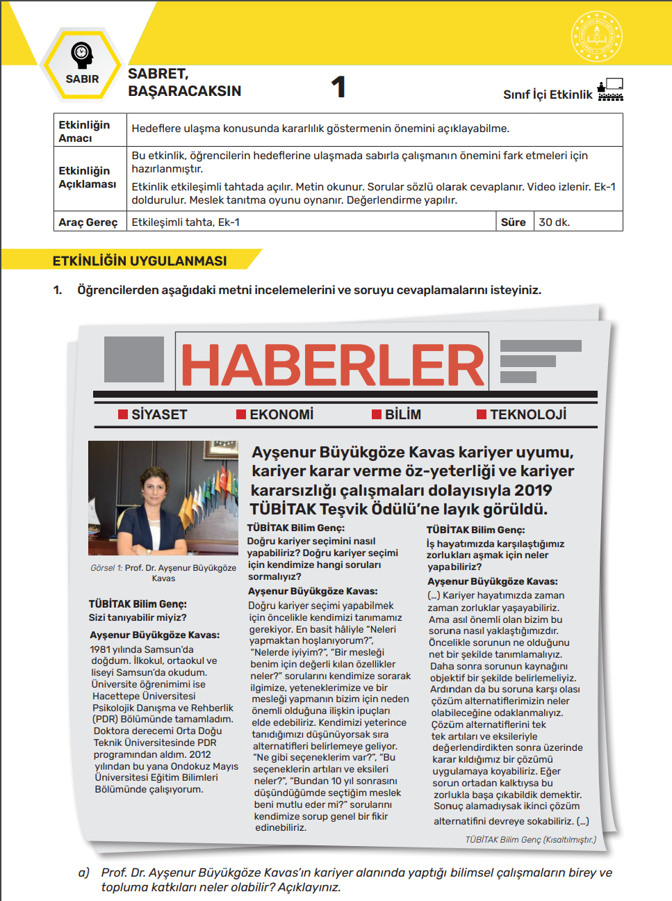 Yayımlanan Değerler Eğitimi - Sosyal Bilimler ve Şahsiyetler - Kök Değerler Temalı Öğretmen Etkinlik Kitabı'nda örnek gösterilen kişilerden birisi de Ondokuz Mayıs Üniversitesi (OMÜ) Eğitim Fakültesi Rehberlik ve Psikolojik Danışmanlık Bölümü öğretim üyesi Prof. Dr. Ayşenur Büyükgöze Kavas oldu.