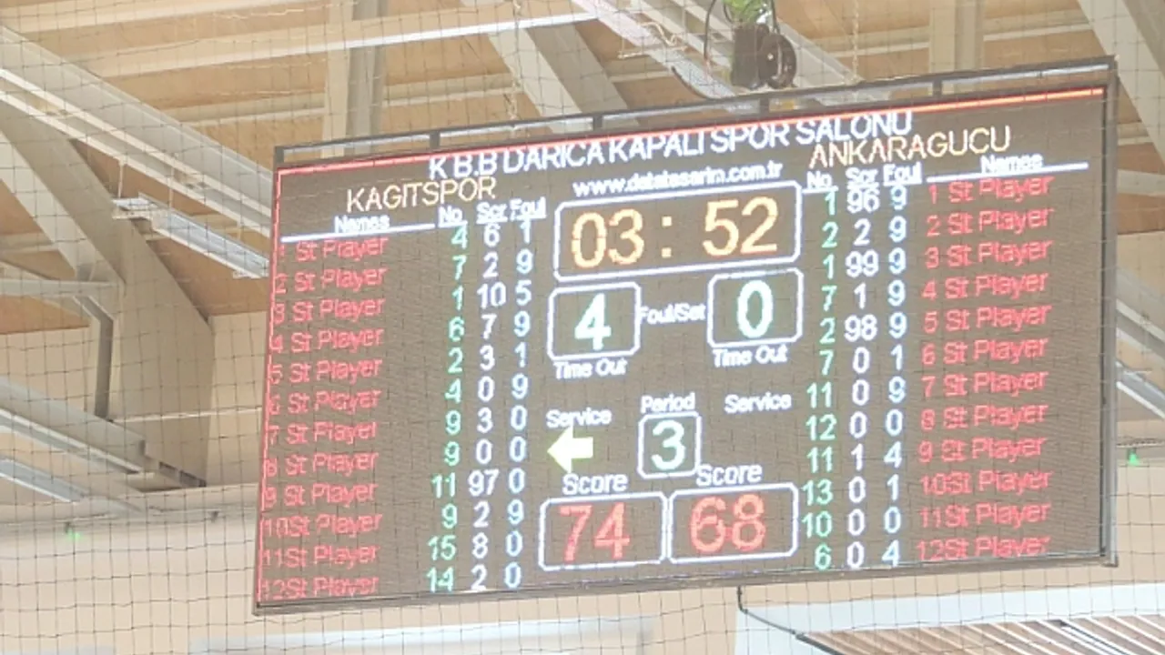 Türkiye Basketbol Ligi’nde düşme hattını yakından ilgilendiren karşılaşmada Kocaeli Büyükşehir Belediyesi Kağıtspor, Darıca Eray Şamdan Spor Salonu’nda karşılaştığı Ankaragücü Mamak Belediyesi’ni 80-72 mağlup etti. Maç içinde sık sık arıza yapan skorbord nedeniyle oyun sürekli kesintiye uğradı. Özellikle ikinci yarı oyuncuların soğumasına neden olan, skor üretilmesinin ve basketbol oynanmasının önüne geçen skorbord arızası Kağıtspor Başantrenörü Ahmet Murat Yolcu’nun salon bulma krizini dile getirmesine ve maç görevlilerinden özür dilemesine yol açtı.