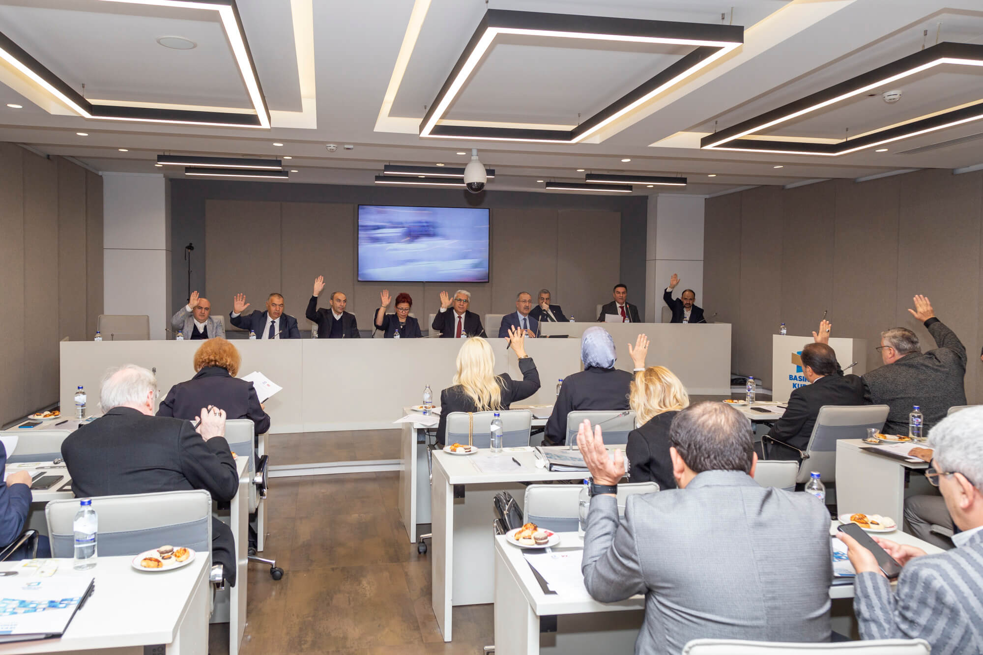Genel Kurul Toplantısının son oturumunda, Yönetim Kurulunun Genel Kurula teklif olarak sunduğu ve gündeme alınan maddeler görüşüldü. İlan, Hukuk ve Mali İşler Komisyonlarında ele alınan gündem maddelerine ilişkin hazırlanan raporların okunmasının ardından oylamaya geçildi.
