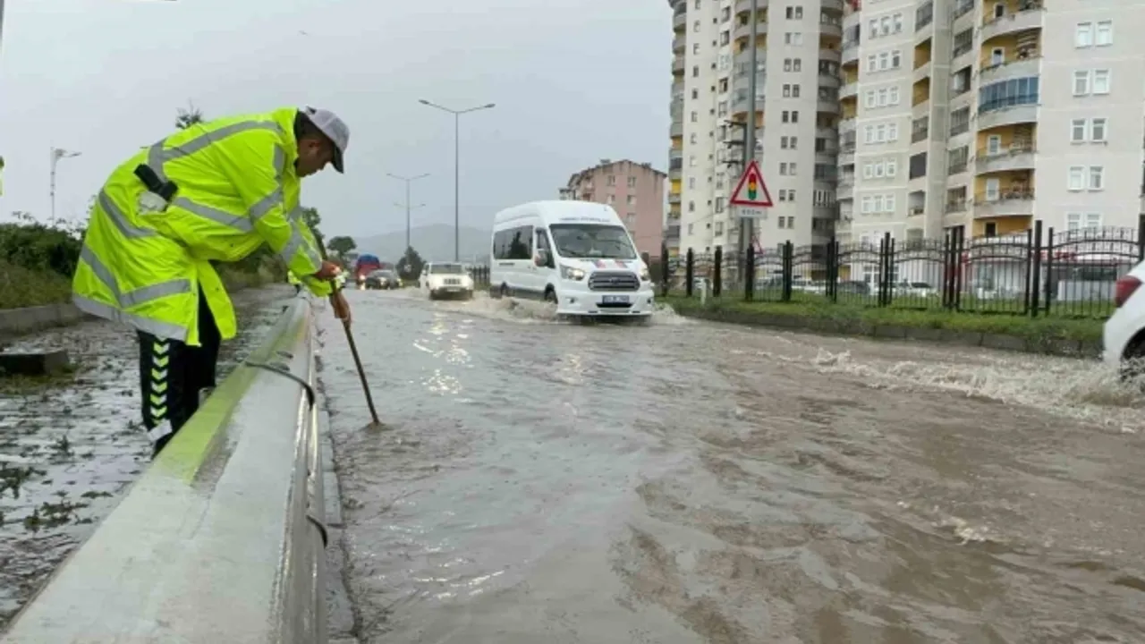 Öte yandan, Karadeniz Sahil Yolu giderlerin tıkanması ile su altında kaldı. Polis ekipleri, tıkanan giderleri açmak için çalışma yaptı.