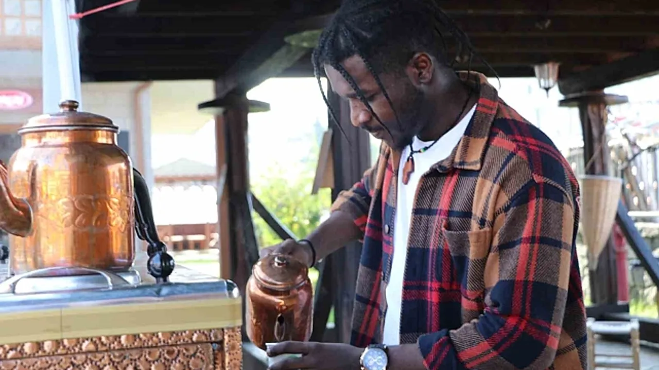 Rize'de sosyal medya yoluyla ünlenen Ganalı Üniversite öğrencisi Cumhuriyetin 100. yılına özel 100 bin bardak çay dağıtımı etkinliğine katılarak çay dağıttı.
