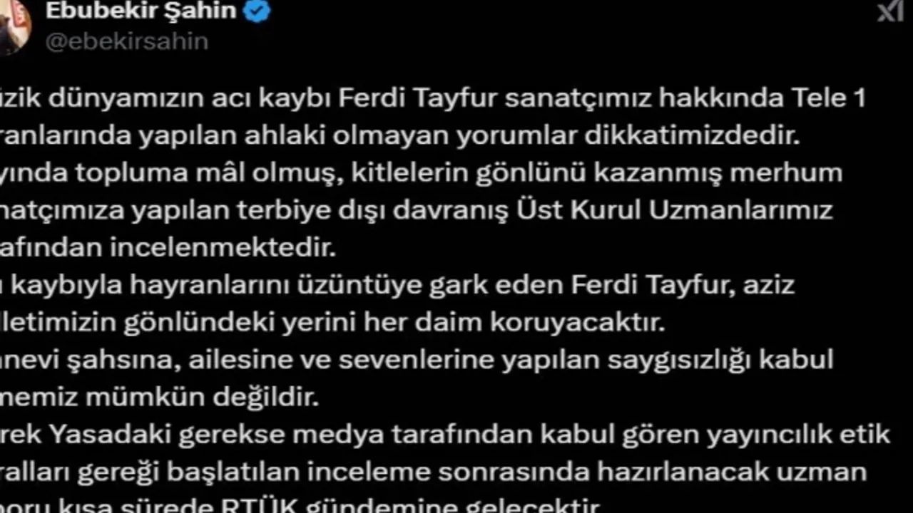 Tele 1’de program sunucusu Musa Özuğurlu’nun canlı yayında ünlü sanatçı Ferdi Tayfur’un ölümüne ilişkin, “Herkes bir övüyor, bir övüyor. Ferdi gitti diye. Devlet Bahçeli de çok üzüldüğünü açıklamış. Kişilik olarak nasıl bir insandı bu bizi ilgilendirmiyor. Fakat sanatsal açıdan baktığımız zaman berbattı, yani bu gerçeği de söylemek lazım. Arabesk yapıyordu, bildiğiniz ağlak bir arabesk yapan birisinden bahsediyoruz. ‘Ferdi Baba öldü’ diye bir hale getirdiler. Kimse kusura bakmasın doğruyu da söyleyeceğiz” ifadelerini kullanmıştı. Yorumlara sanat camiası ve halktan gelen tepkiler üzerine Özuğurlu, sosyal medya hesabından bir özür mesajı yayınlamıştı. Radyo Televizyon Üst Kurulu (RTÜK) Başkanı Ebubekir Şahin, sosyal medya hesabından yaptığı paylaşımda konuyla ilgili inceleme başlattıklarını belirtti. Şahin, "Müzik dünyamızın acı kaybı Ferdi Tayfur sanatçımız hakkında Tele 1 ekranlarında yapılan ahlaki olmayan yorumlar dikkatimizdedir. Yayında topluma mal olmuş, kitlelerin gönlünü kazanmış merhum sanatçımıza yapılan terbiye dışı davranış Üst Kurul uzmanlarımız tarafından incelenmektedir. Acı kaybıyla hayranlarını üzüntüye gark eden Ferdi Tayfur, aziz milletimizin gönlündeki yerini her daim koruyacaktır. Manevi şahsına, ailesine ve sevenlerine yapılan saygısızlığı kabul etmemiz mümkün değildir. Gerek yasadaki gerekse medya tarafından kabul gören yayıncılık etik kuralları gereği başlatılan inceleme sonrasında hazırlanacak uzman raporu kısa sürede RTÜK gündemine gelecektir” dedi.