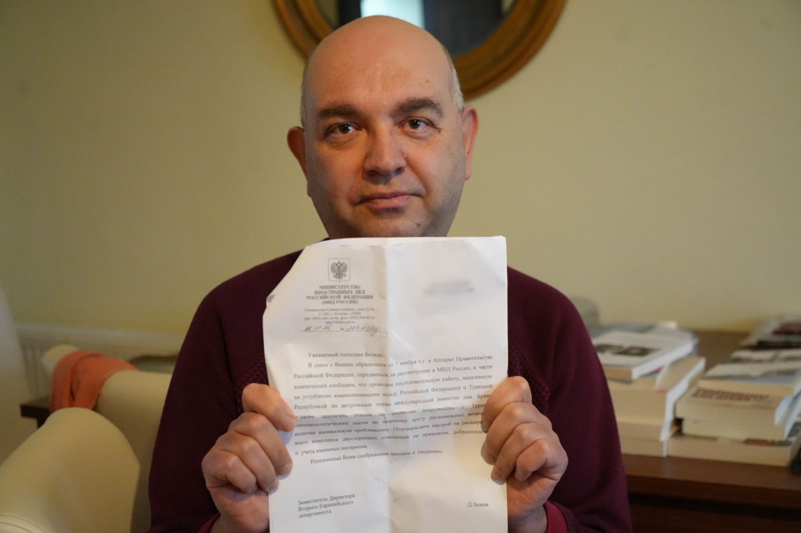 Balkar, Rusya’ya gönderdiği yazıya cevap geldiğini belirterek, "Dün bana hem Kremlin'den hem de Dışişleri Bakanlığı'ndan cevap geldi. Dışişleri Bakanlığı, ‘Hassasiyetlerinizi anıyoruz. Biz Türkiye'yle beraber Trans-Kafkasya'da beraber ortak hareket ediyoruz. Türkiye bizim dostumuz’ diye bir cevap geldi. Ben Rusya'nın da bu hatasını anladığı için kendilerine teşekkür ediyorum. Türklerin Ermeni soykırımı yapmadığını, bunun bir teşhir olduğunu bütün tarihçilerin çoğu biliyor. Yani Ermenistan Başbakanı bile ‘Türkler bize soykırımı yapmadı, bunları Rusya kafamıza soktu. Türkiye ile ilişkilerimizi düzeltmemiz lazım’ derken yani Rusya Dışişleri Bakanlığı Sözcüsü'nün böyle bir söylemi Türk-Rus ilişkilerine de zarar veriyor. Çünkü dışişleri, yani Rus Dışişleri Bakanlığı'nın resmi bir görüşü değil o söz. O sadece sözcüsünün lafı. Çünkü mesajda hassasiyetinizi anlıyoruz. Türk-Rus ilişkilerini biz bozmak istemiyoruz diye bana cevap geldi" diye konuştu.