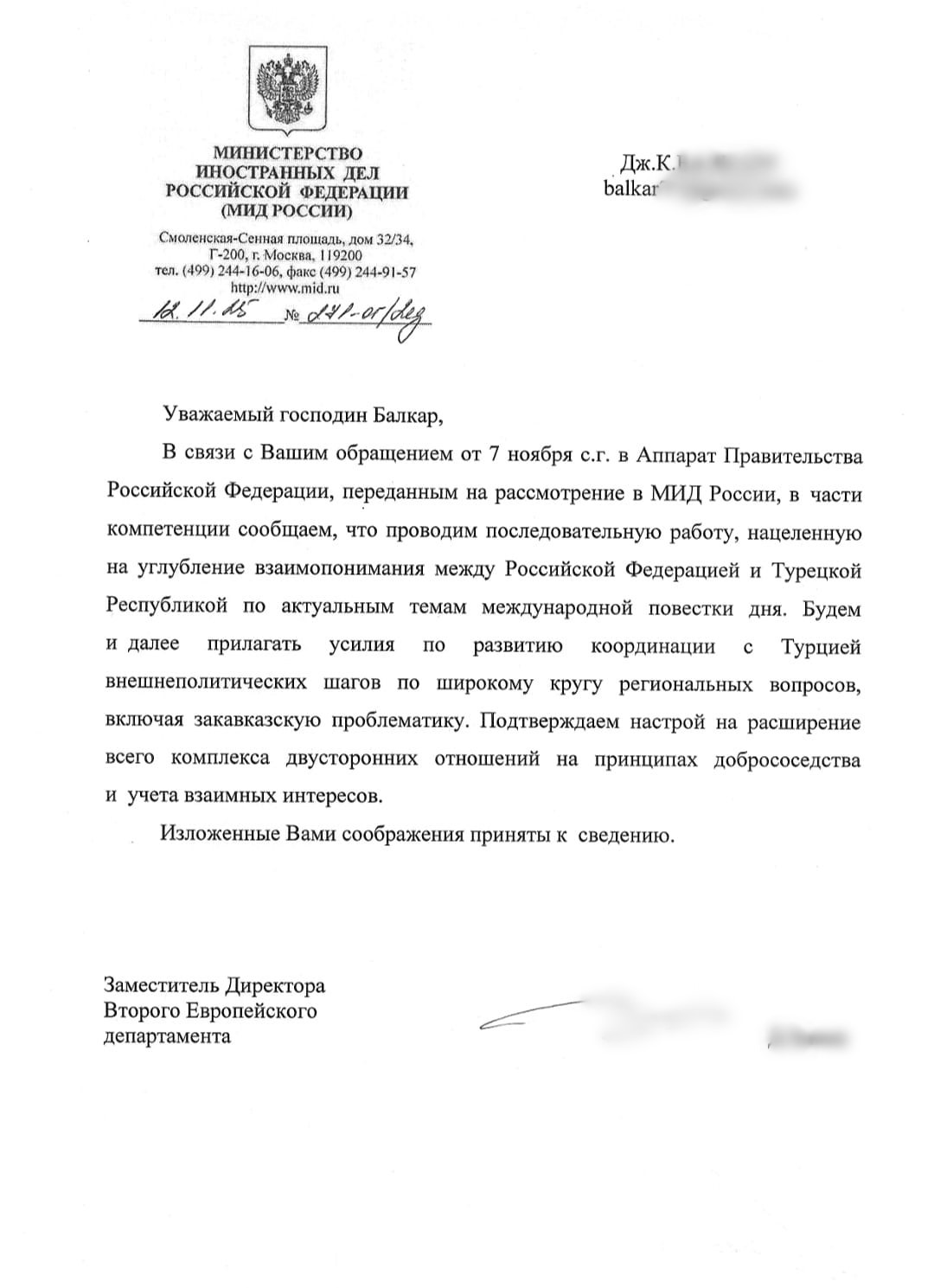 ASALA tarafından şehit edilen Türk Büyükelçi Galip Balkar’ın yeğeni Cemal Kemal Balkar’ın, Rusya Dışişleri Bakanlığı Sözcüsü Maria Zaharova’nın sözde Ermeni soykırımı iddialarına tepki olarak Kremlin’e gönderdiği yazıya, Moskova’dan "Türkiye bizim dostumuz" cevabı geldi. Ermenistan Başbakanı Nikol Paşinyan’ın mecliste yaptığı konuşmada ise Sovyet istihbarat örgütü KGB’nin Ermeniler ile Türkler ve Azerbaycanlılar arasındaki düşmanlığı körüklediğini öne sürmesi tartışaları ateşledi. Paşinyan’ın bu sözleri üzerine Rusya Dışişleri Bakanlığı Sözcüsü Zaharova, "Tarihsel olarak cahilce" diyerek Türkleri suçlayan ve kınayan açıklamalarda bulunmuştu. Bu ifadeler, 1983’te ASALA tarafından şehit edilen Büyükelçi Galip Balkar’ın yeğeni Cemal Kemal Balkar’ı harekete geçirdi. Balkar, Zaharova’nın sözlerinin hem tarihsel olarak yanlış olduğunu hem de Türk-Rus ilişkilerine zarar verebileceğini belirterek Kremlin’e yazı gönderdi. Rus makamları ise bu yazıya kısa sürede dönüş yaptı.