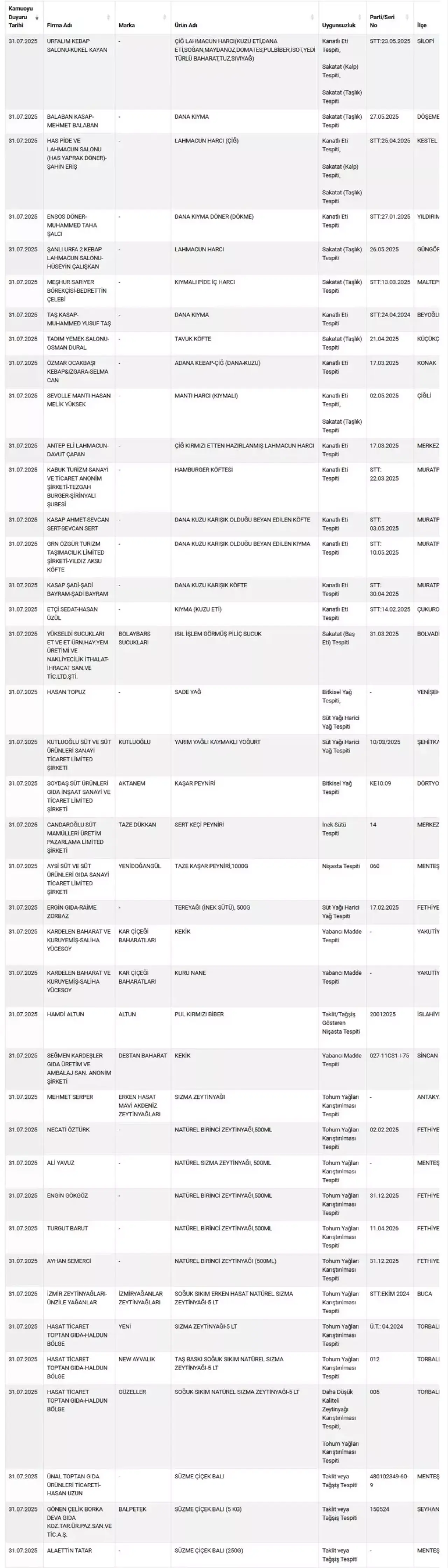 Tarım ve Orman Bakanlığı, gıda denetimlerinde taklit ve tağşiş yaptığı tespit edilen firmaları ve ürünlerini kamuoyuyla paylaşmaya devam ediyor. Vatandaşların güvenilir gıdaya erişimini sağlamak amacıyla periyodik olarak güncellenen listeye, son yapılan testlerle birlikte yeni markalar eklendi.