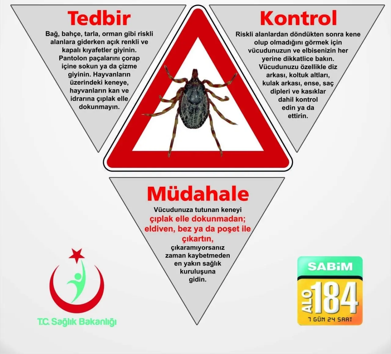 Müdür Sağlam, özellikle küçük çocuklarda kene ısırıklarının ebeveynler tarafından düzenli olarak kontrol edilmesi gerektiğini ifade etti. Kene ısırığının ardından gelişebilecek yüksek ateş, kızarıklık gibi KKKA belirtilerine karşı dikkatli olunması ve bu tür şikayetlerde zaman kaybetmeden sağlık kuruluşlarına başvurulması gerektiğini belirtti.