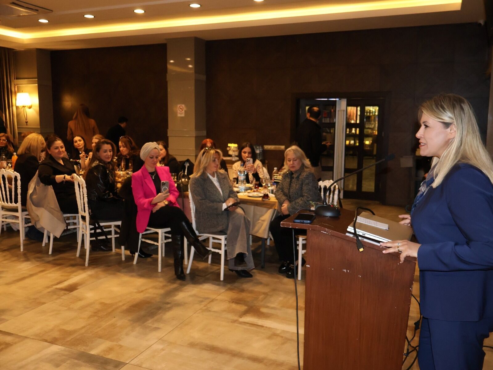 Konuşmanın ardından Esra Ekmekçi Tonkal, 8 Mart Dünya Kadınlar Günü dolayısıyla 'Çiçek Değil Dönüştüren Güç' konulu sunum yaptı. Ardından derneği katılan yeni üyelere rozetleri Başkan Şehnaz Dereli tarafından takıldı. gecenin sonunda mart ayında doğan üyelerin doğum günü kutlanırken, 8 Mart Dünya Kadınlar Günü için pasta kesimi ile program sona erdi.