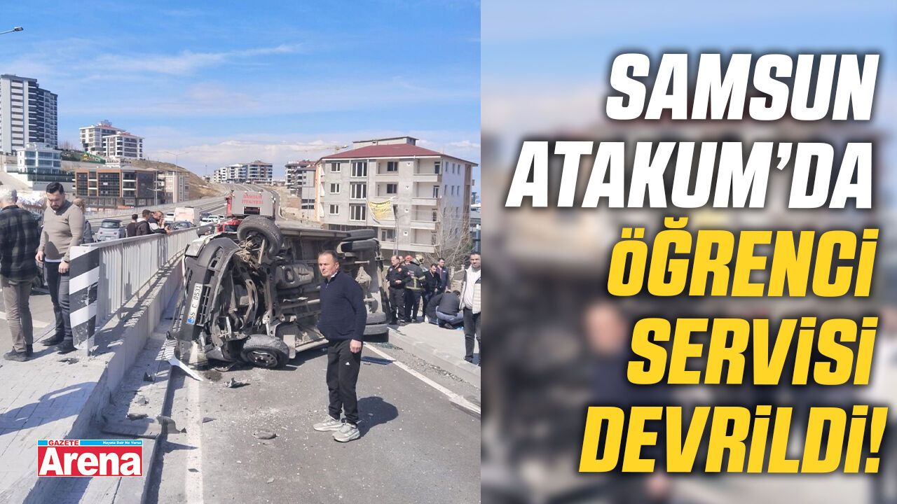 Samsun’un Atakum ilçesinde meydana gelen trafik kazasında, boş bir öğrenci servisi minibüsü devrildi.