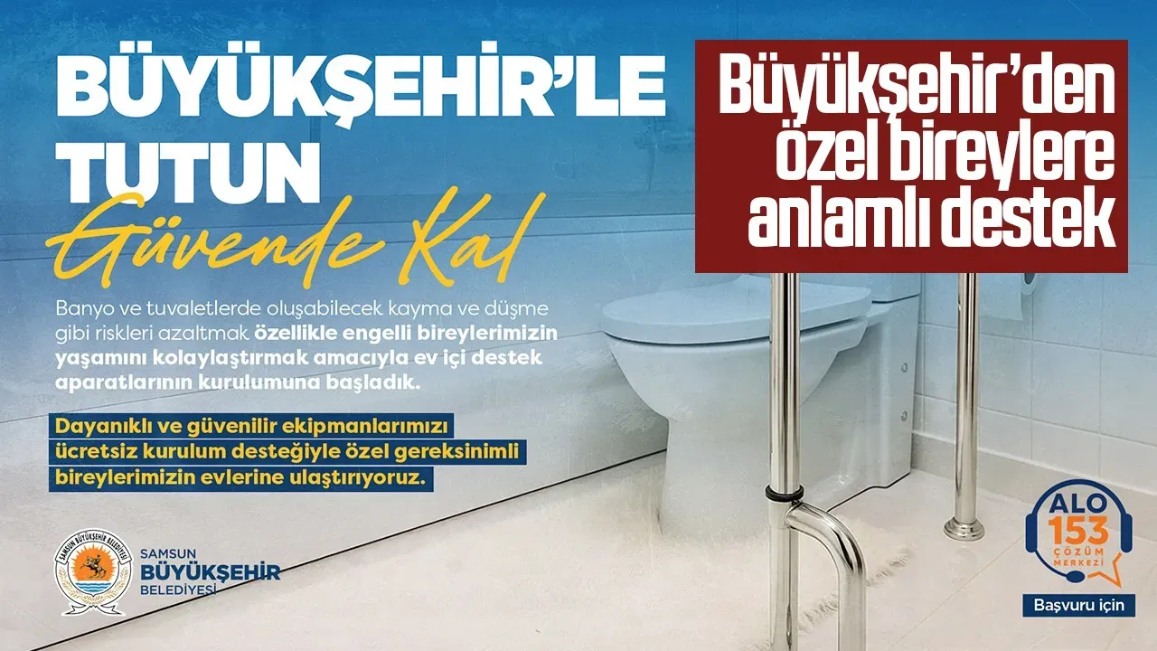 Samsun Büyükşehir Belediyesi, özel bireylerin yaşam kalitesini artırmak ve ev içi kazaları önlemek amacıyla yeni bir projeyi hayata geçiriyor. Proje kapsamında, özellikle banyo ve tuvalet gibi kaygan zeminlerde düşme riskini azaltmak için ev içi tutunma aparatları ücretsiz olarak kurulacak.