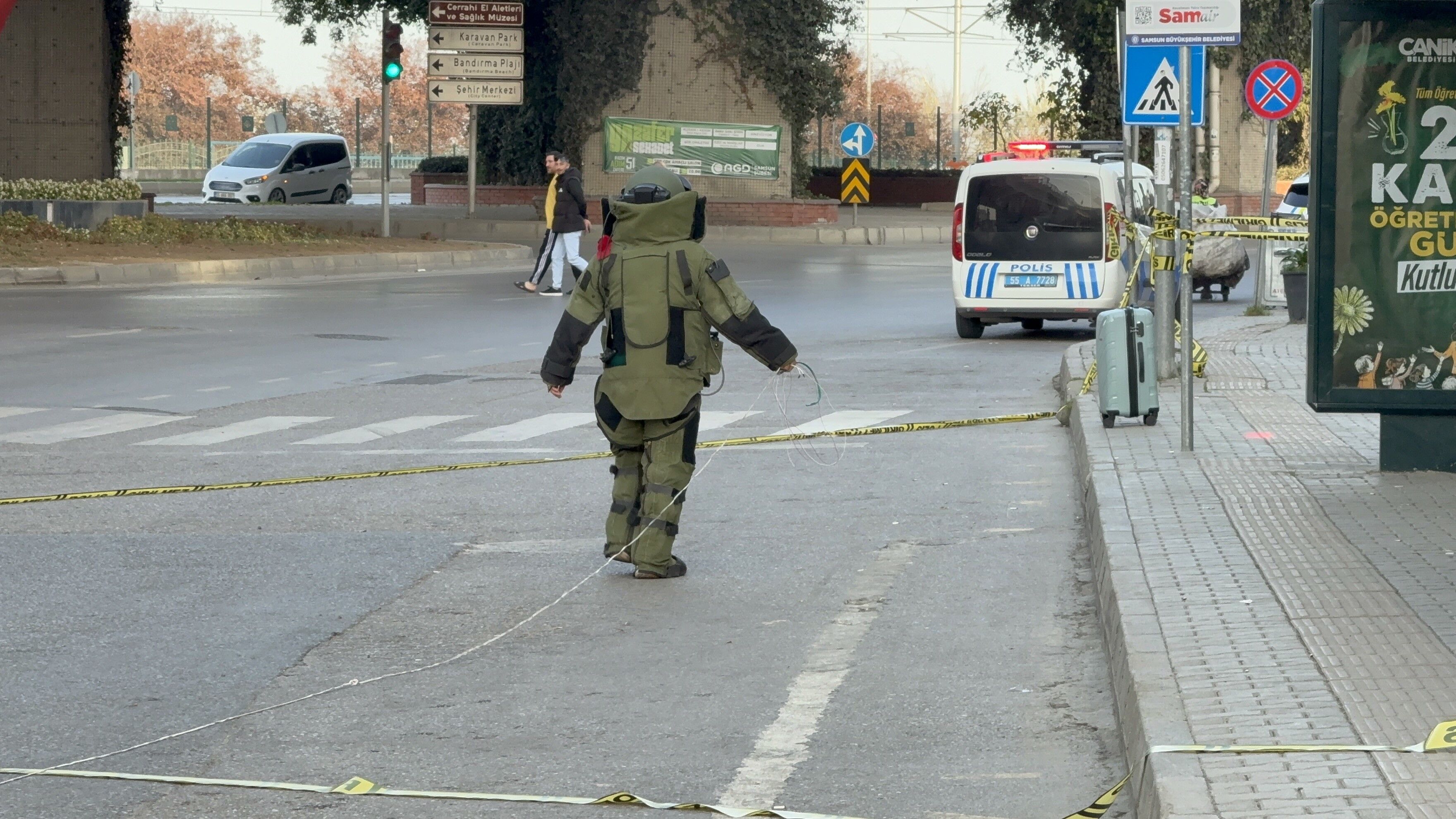 Vatandaşlar, Belediyeevleri otobüs durağı yanında bırakılmış valizi fark ederek durumu polise bildirdi. Olay yerine gelen ekipler çevrede geniş güvenlik önlemleri alarak bölgeyi hem yaya hem araç trafiğine kapattı.