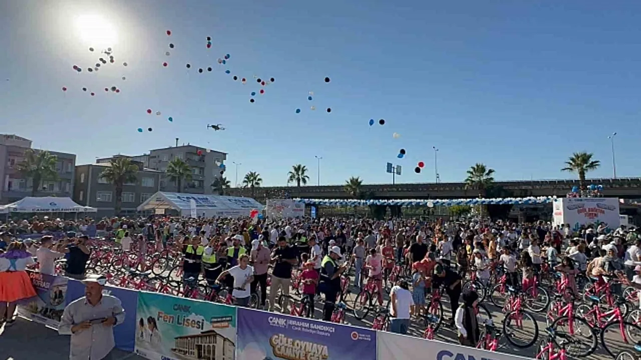 Samsun'da Canik Belediyesi tarafından düzenlenen 'Haydi Çocuklar Güle Oynaya Camiye Projesi' çerçevesinde 1160 çocuk bisiklete kavuşmanın sevincini yaşadı.