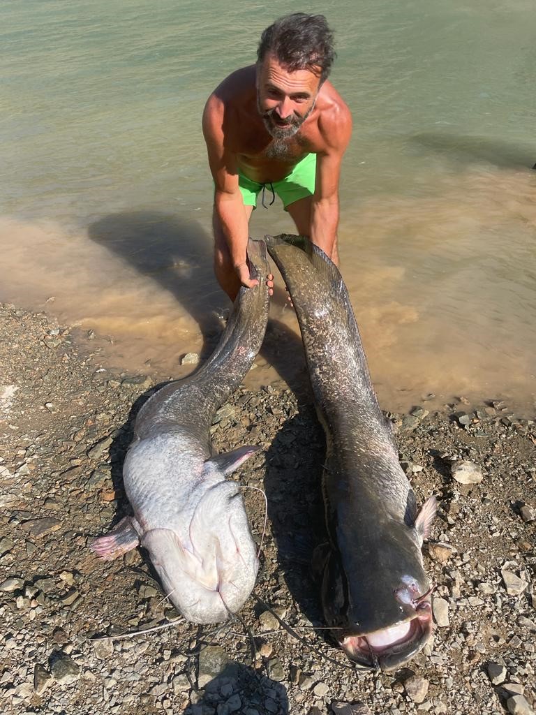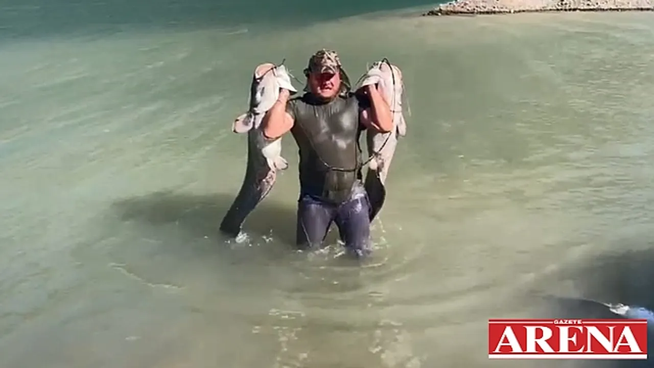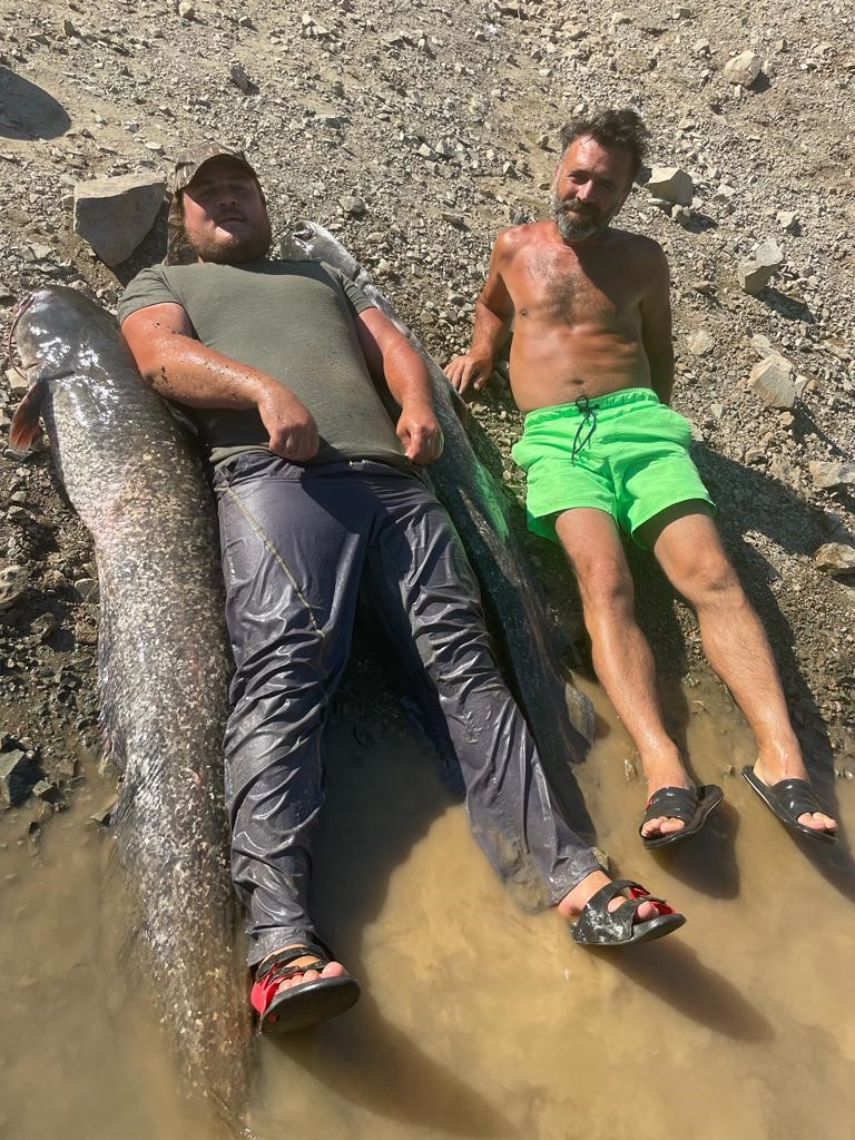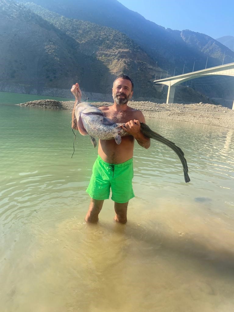 Samsun 'dan Artvin'in Borçka Barajı'na giden hobi balıkçısı Serkan Çakar, Sercan Çakar ve Olgun Aydoğan, göle olta attı. Samsun lu balıkçıların oltalarına her biri neredeyse 50 kiloyu bulan 2 metre uzunluğunda 3 tane kedi balığı takıldı. Baraj gölünde tekne ile yaklaşık 5 saat boyunca olta atan balıkçılar, yakaladıkları kedi balıkları ile poz verdi.