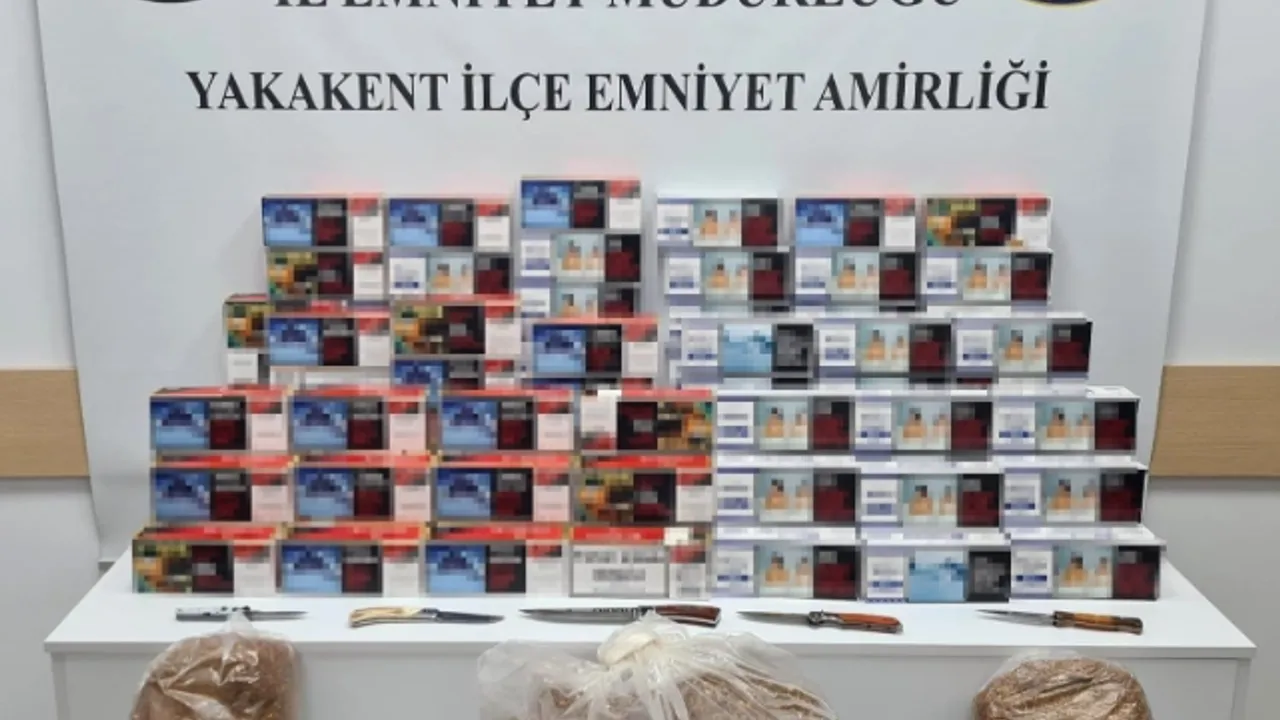 Edinilen bilgiye göre, Samsun'un Yakakent ilçesinde Yakakent İlçe Emniyet Amirliği ekiplerince düzenlenen uygulamada, bir araçta yapılan aramada 20 bin adet makaron, 25 kilo kaçak tütün ve 5 adet bıçak ele geçirildi. Olayla ilgili soruşturma devam ediyor.