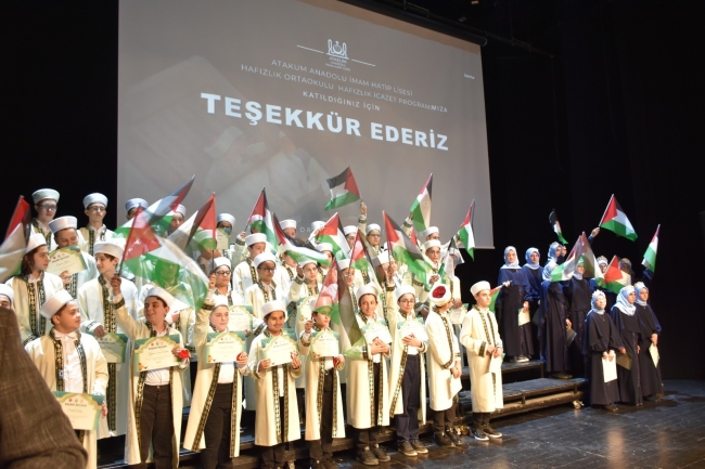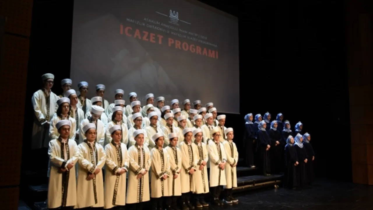 Atakum Anadolu İmam Hatip Lisesi'nde "Örgün Eğitimle Birlikte Hafızlık" projesi kapsamında 55 ortaokul öğrencisi için hafızlık icazet töreni düzenlendi.