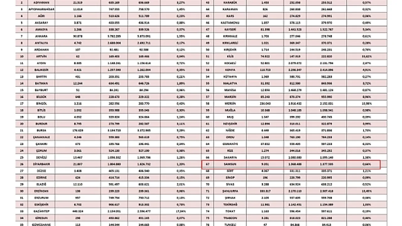 Geçici koruma kapsamındaki Suriyelilerin illere göre dağılımı istatistiğine göre ise Samsun’daki kayıtlı geçici koruma kapsamındaki Suriyeli sayısı 9 bin 51 olarak dikkat çekti. 1 milyon 368 bin 488 nüfusu olan Samsun’da kayıtlı Suriyeli sayısının ilde yaşayan kişi sayısına oranı da yüzde 0,66 olarak belirtildi.