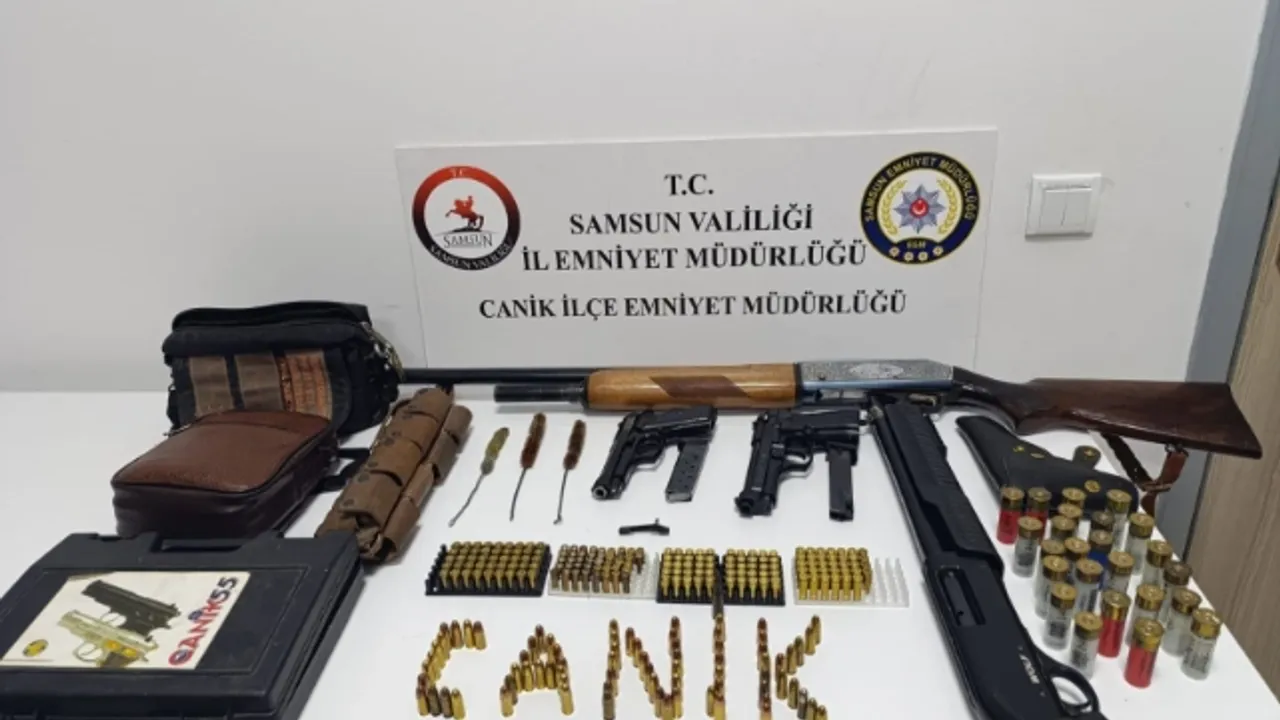 Edinilen bilgiye göre, Samsun'un Canik ilçesi Gaziosmanpaşa Mahallesi'nde polis tarafından bir eve operasyon düzenlendi. Yapılan aramalarda, 2 adet ruhsatsız tüfek, 24 adet kartuş, 1 adet ruhsatsız tabanca, 149 adet tabanca fişeği, 45 adet kovan, 1 adet silah pimi, 3 adet harbi, 1 adet kurusıkı tabanca ve 50 adet kurusıkı fişeği ele geçirildi. Olayla ilgili soruşturma başlatıldı.
