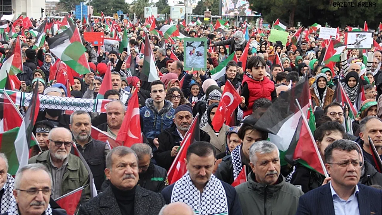 Türkiye genelinde eş zamanlı gerçekleştirilen Filistin'e destek yürüyüşü, Samsun’da 23 Nisan Ortaokulu önünden başladı. Yoğun katılımın olduğu yürüyüş, Çiftlik Caddesi, Lise Caddesi ve Gazi Caddesi güzergahında devam etti. Ellerinde Filistin ve Türkiye bayrakları tutan, İsrail’e tepki pankartları taşıyan vatandaşlar, sloganlar eşliğinde Cumhuriyet Meydanı’na ulaşarak yürüyüşü noktaladı. Burada basın açıklaması yapan Memur-Sen Samsun İl Başkanı Hamdi Yıldız, “Bugün 10 Aralık Dünya İnsan Hakları Günü. Ancak ne hazindir ki, ne acıdır ki hakkın, hukukun, insanlığın olmadığı bir zamanı Filistin’de Gazze’deki kardeşlerimiz yaşıyorlar. On yıllardır Filistin’de büyük zulümler işleyen işgalci terörist İsrail, 7 Ekim sonrasındaki süreçte saldırılarını daha da artırdı. Gazze’de tam anlamıyla bir soykırım yaşanmakta. Son 2 ayki süreçte telaffuz ederken bile tüylerimiz ürperiyor, 13 bine yakın kadın ve çocuk olmak üzere 17 bin Müslüman Filistinli, Gazzeli kardeşimiz şehit oldu” dedi.